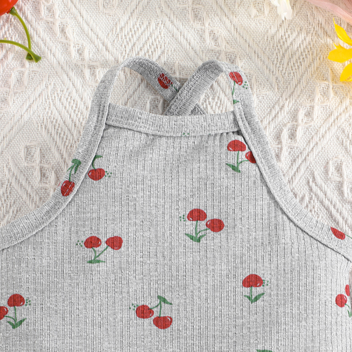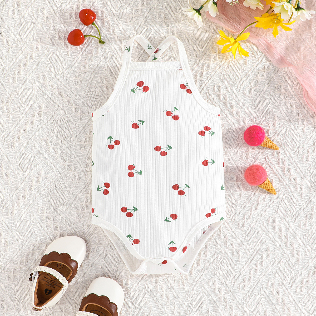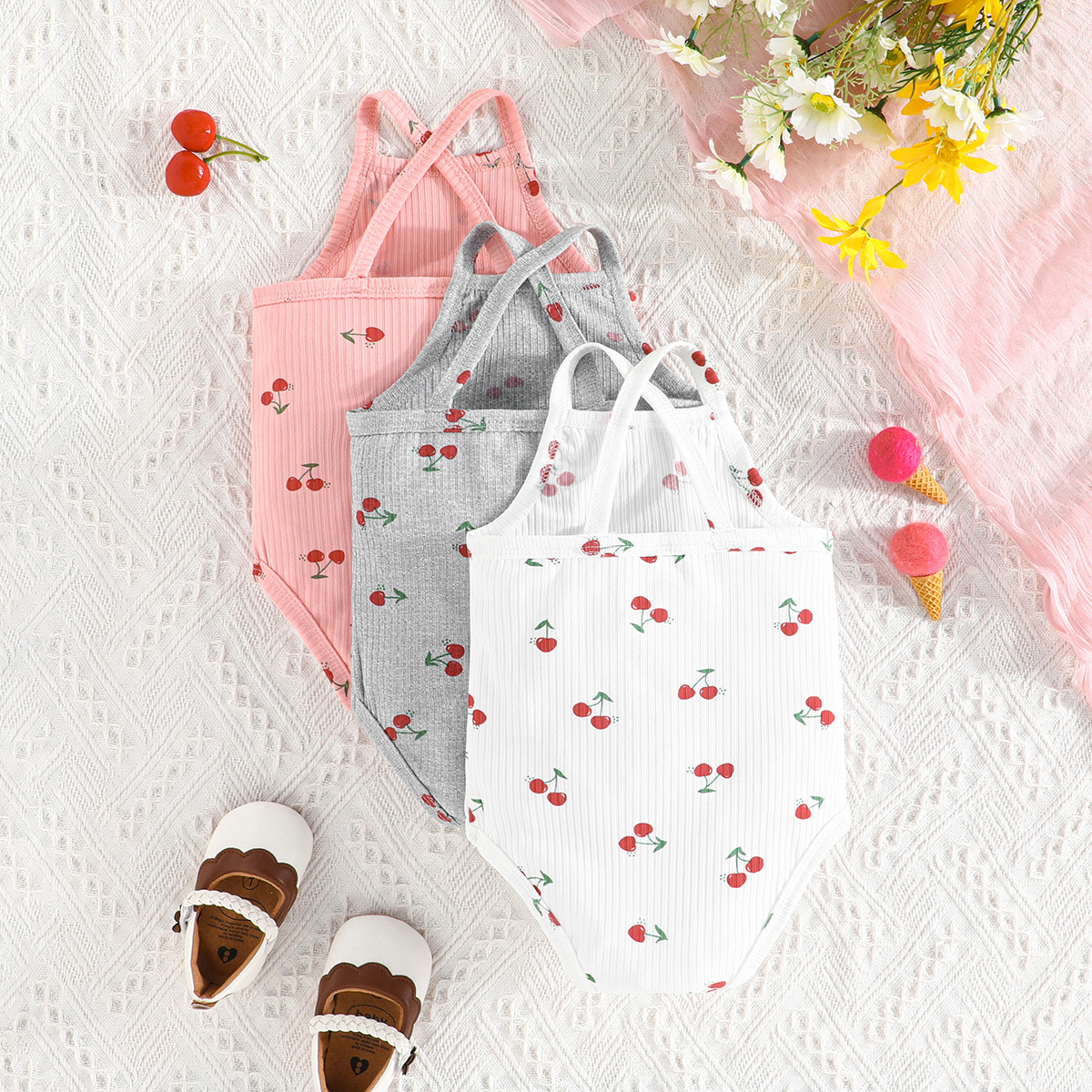 3-24M Baby Girls Cherry Print Sleeveless 3-pack Bodysuit Baby Clothing