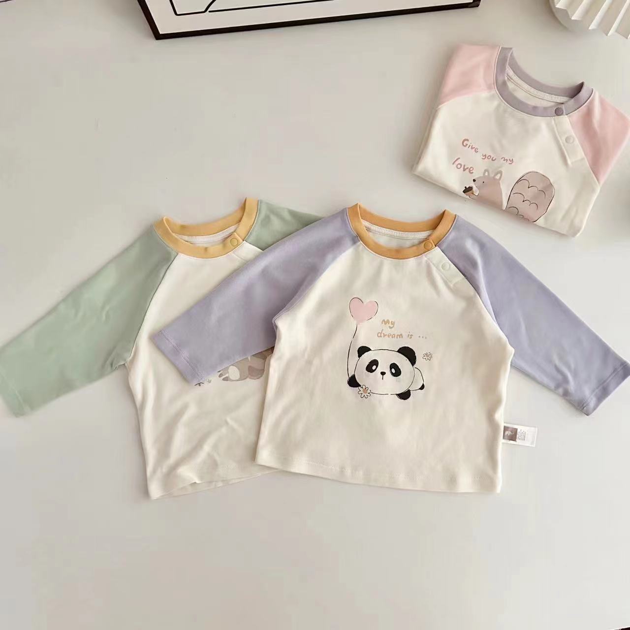 3-24M Baby Cartoon Animal Contrast Long Sleeve Tops Baby Clothing