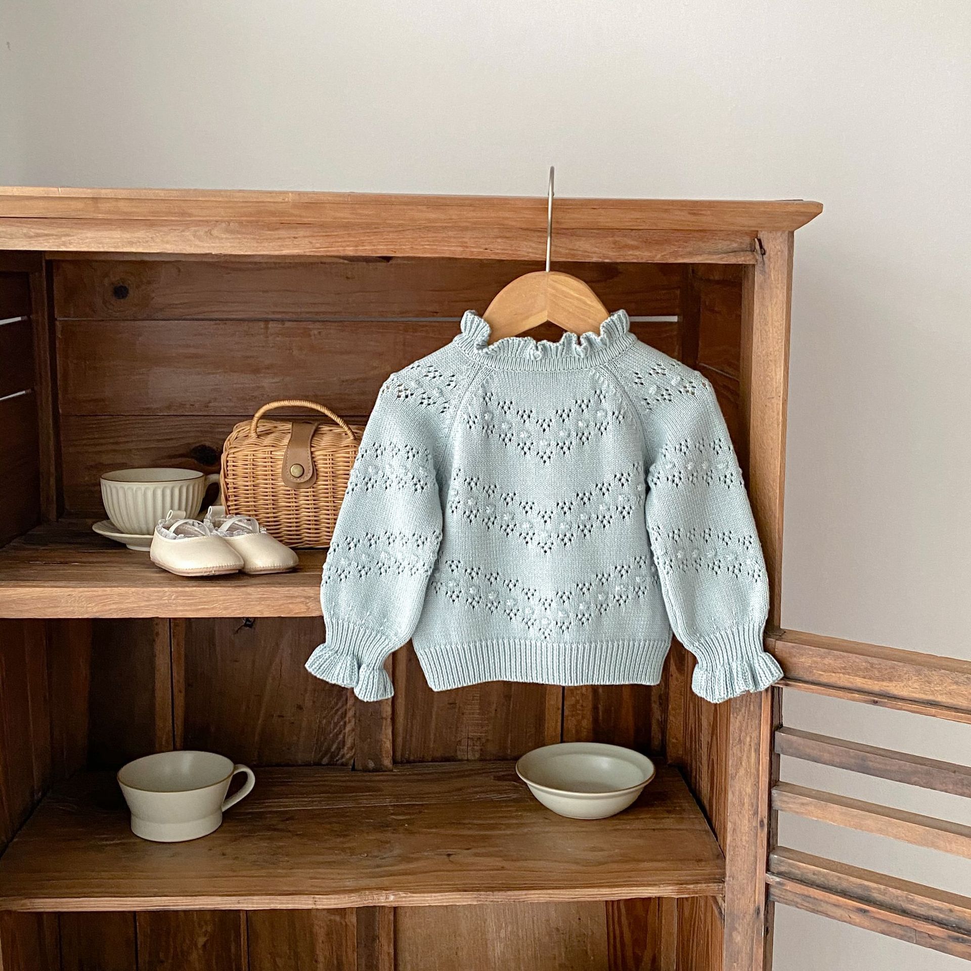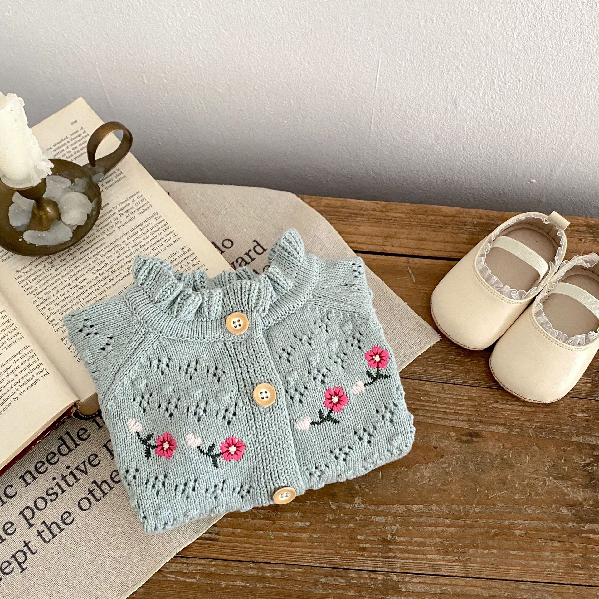 3-24M Baby Bell Cuffs Hollow Embroidered Knitted Cardigan Sweater Baby Clothes