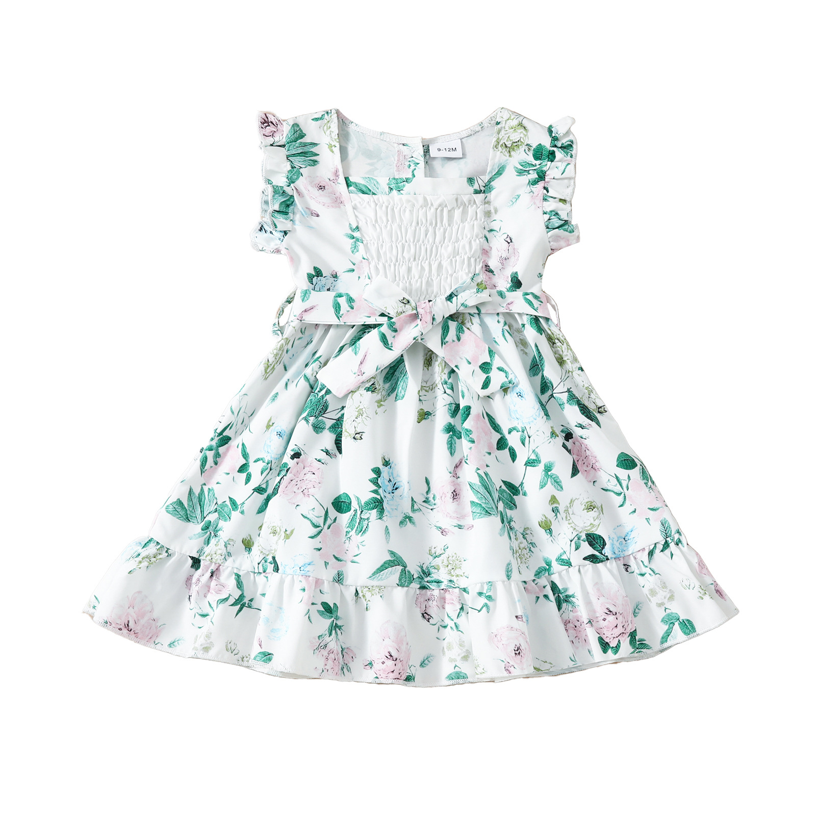 9M-4Y Toddler Girls Sleeveless Floral Casual Square Neck Belt Dresses Girls Clothes