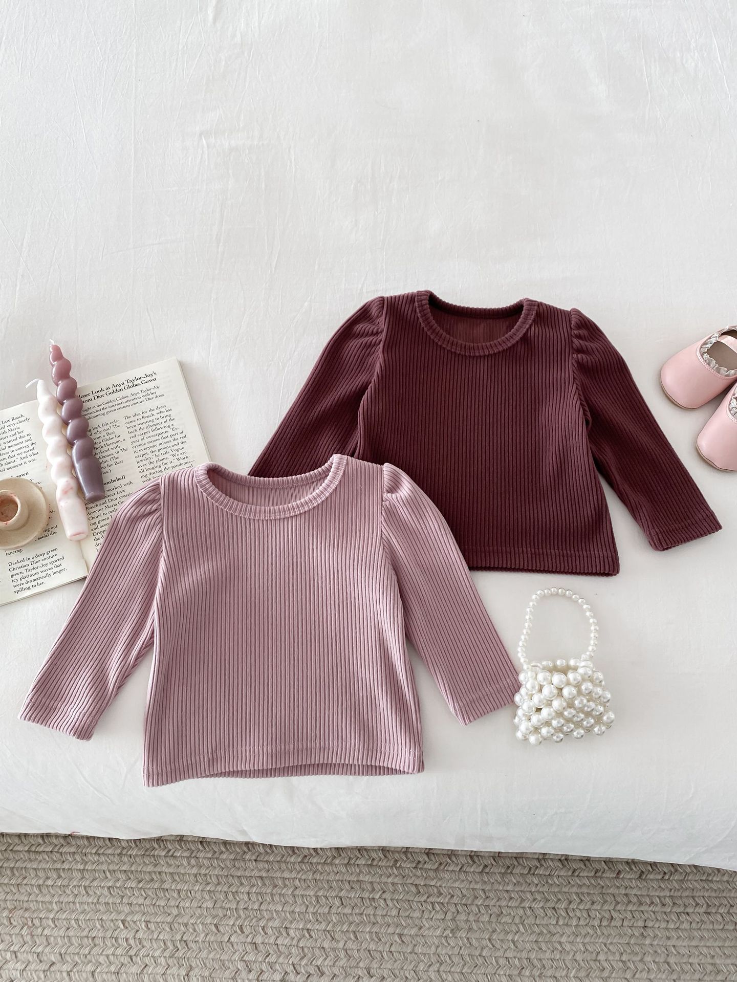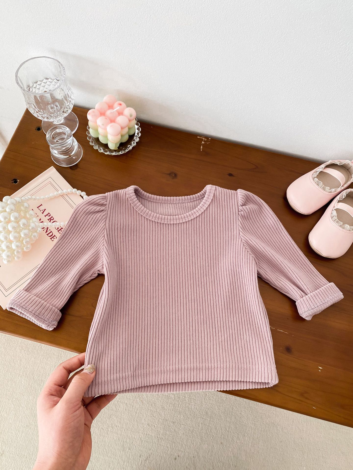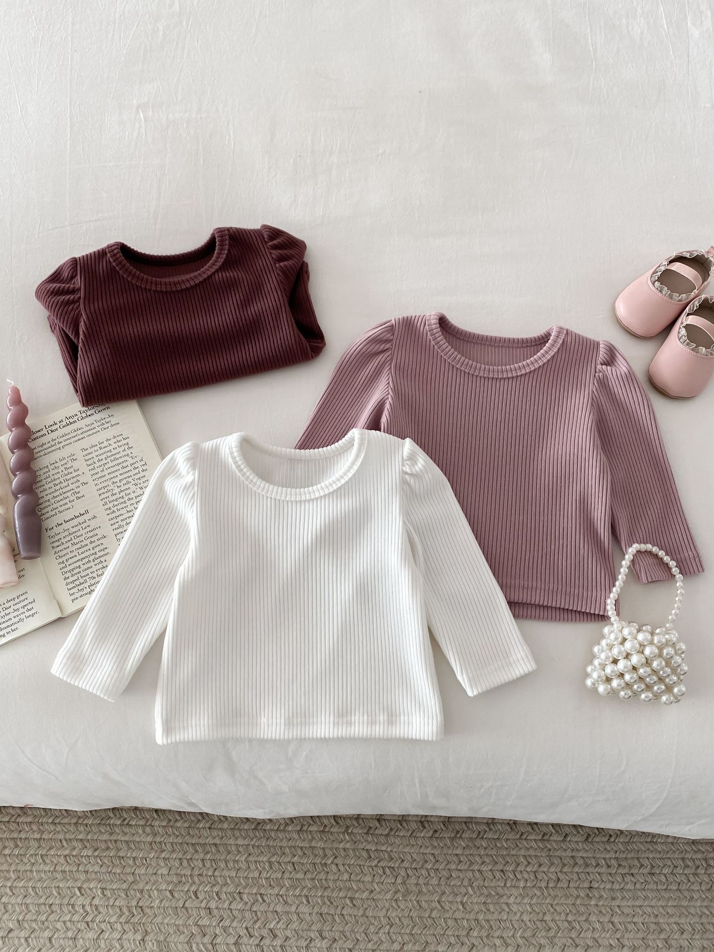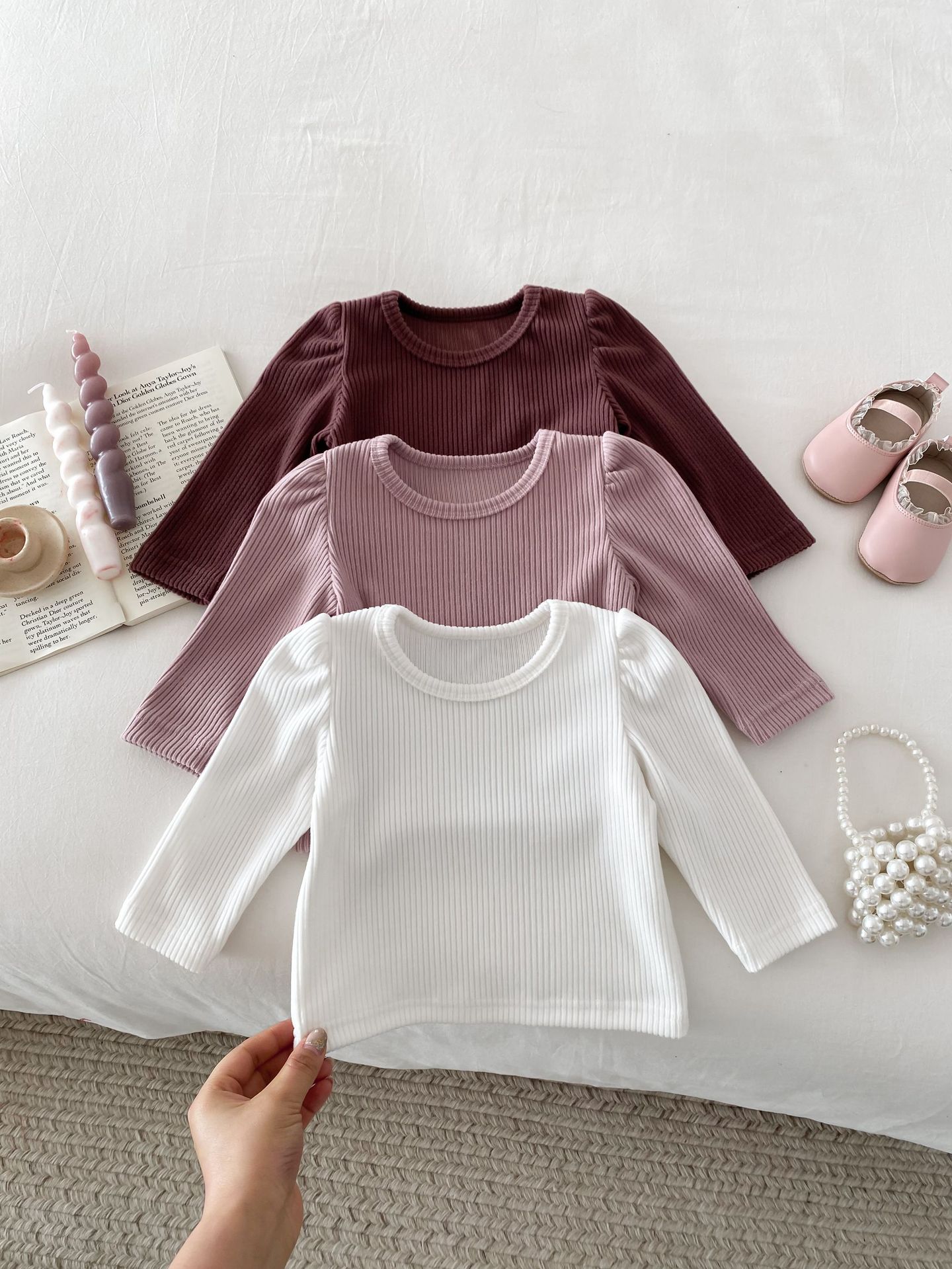 3-24M Baby Girls Solid Color Long Sleeve Ribbed T-Shirts Baby Clothes
