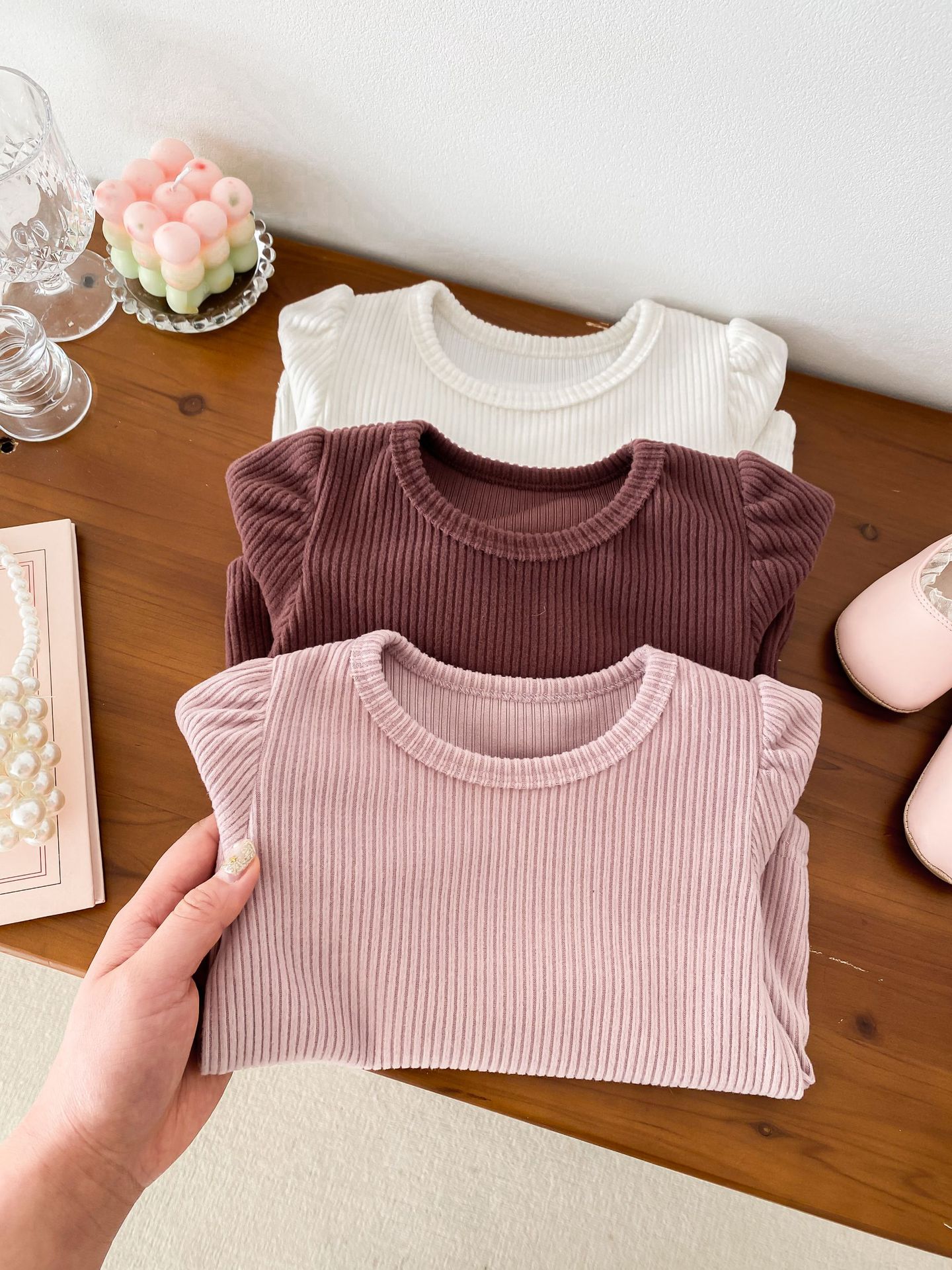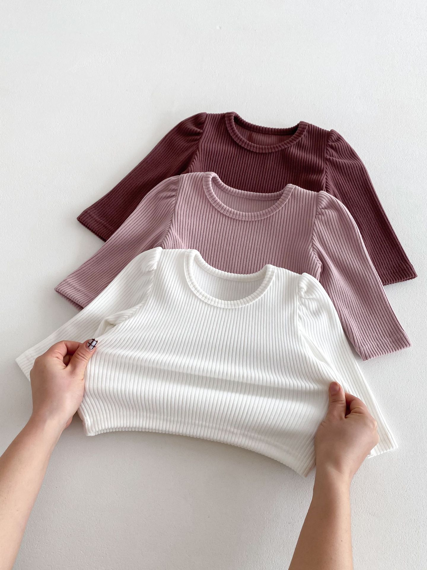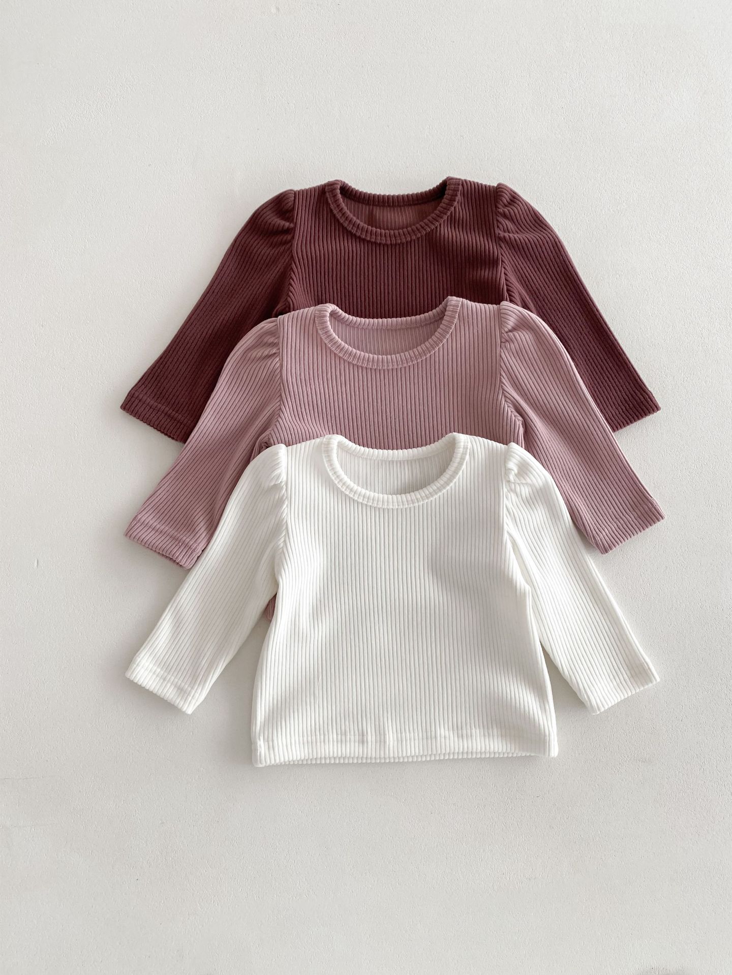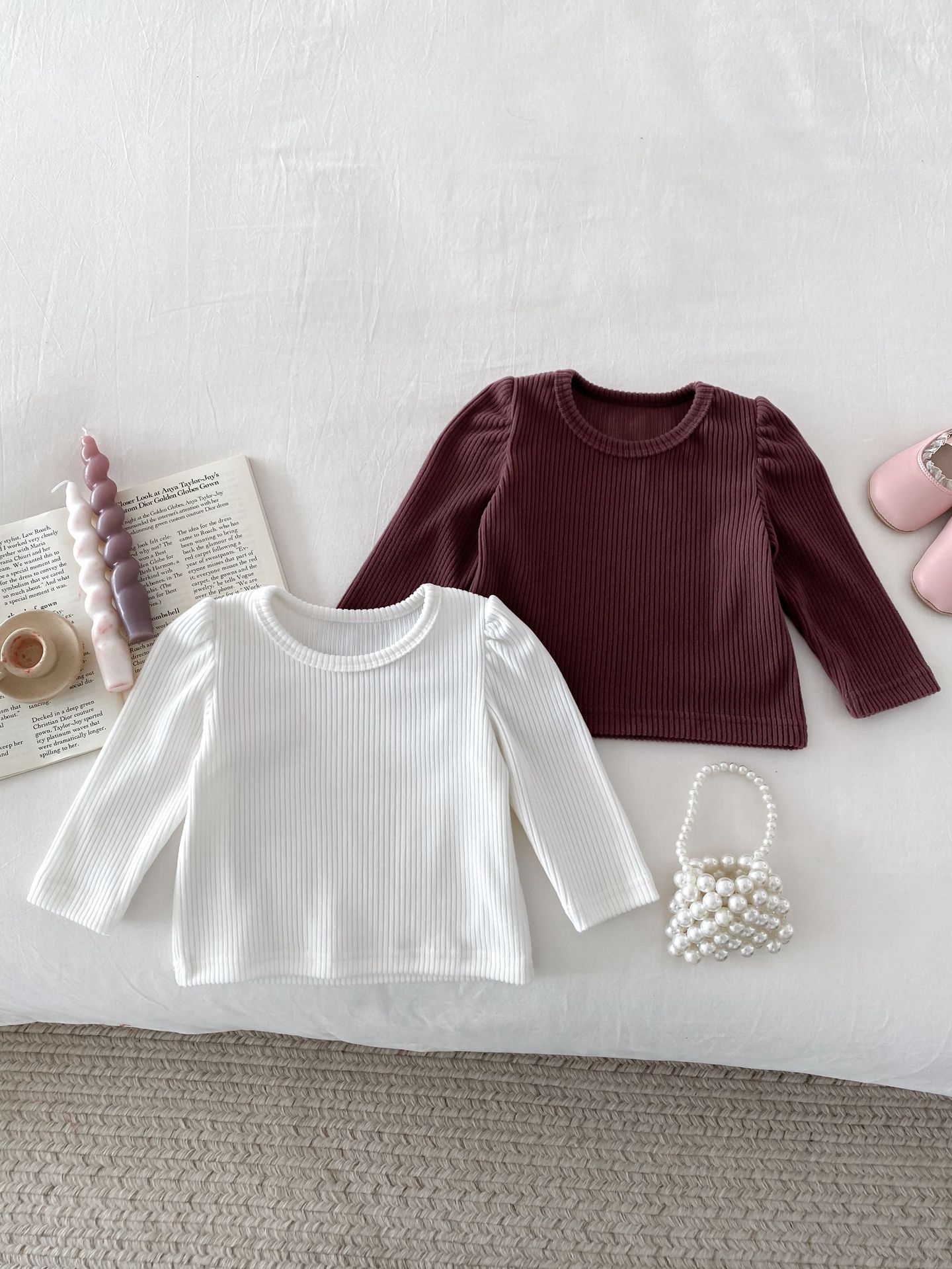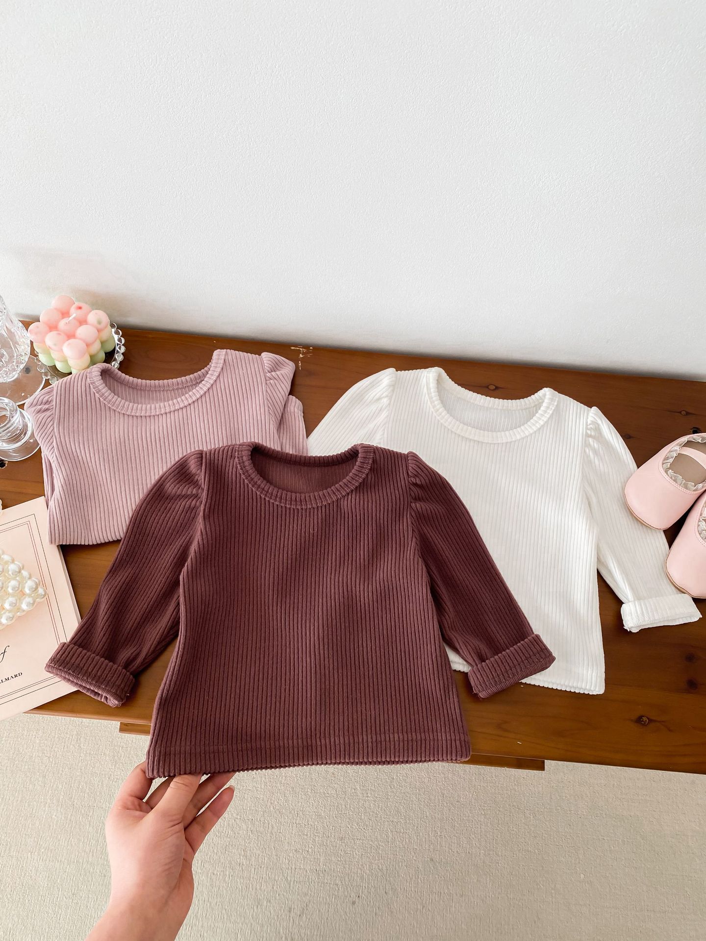 3-24M Baby Girls Solid Color Long Sleeve Ribbed T-Shirts Baby Clothes