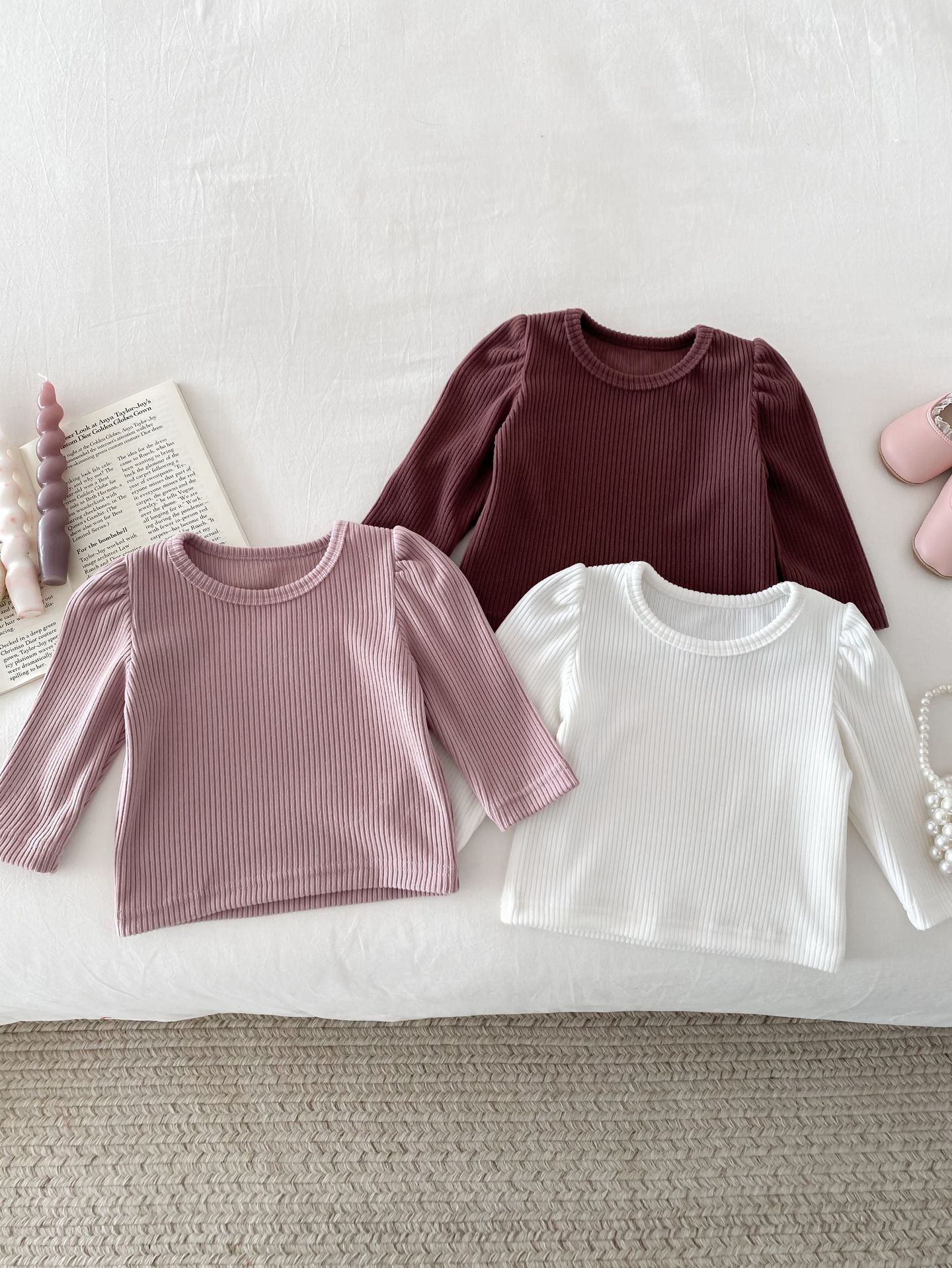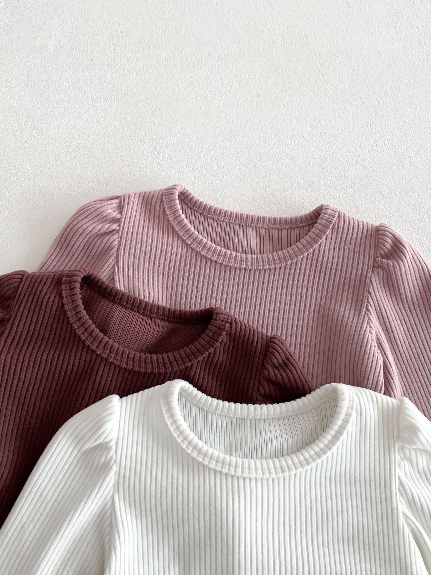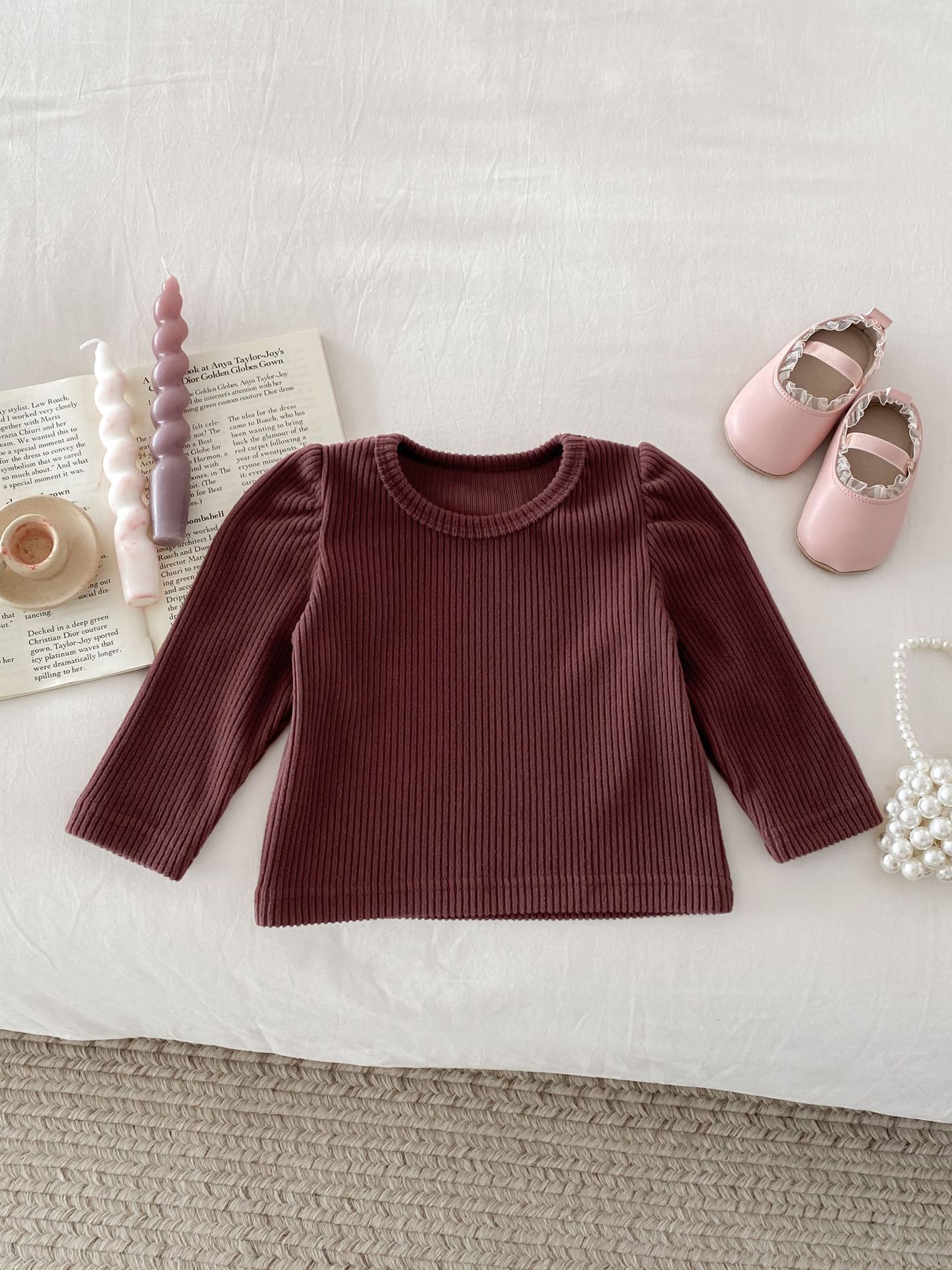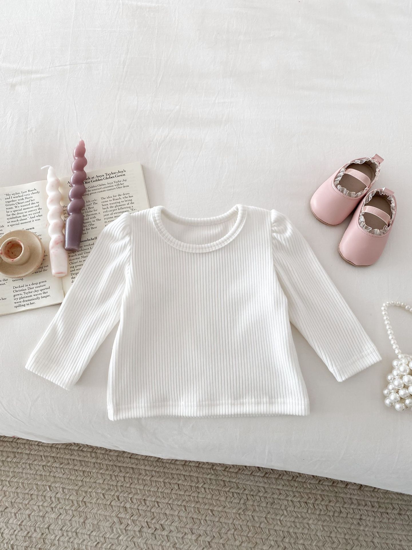 3-24M Baby Girls Solid Color Long Sleeve Ribbed T-Shirts Baby Clothes