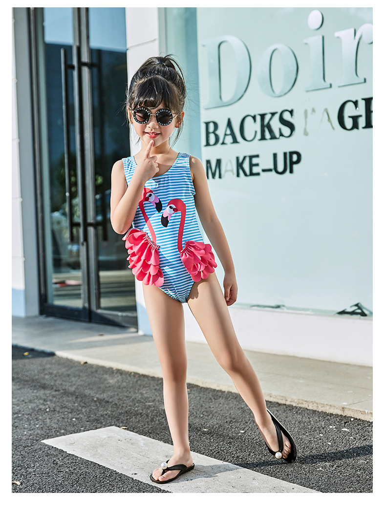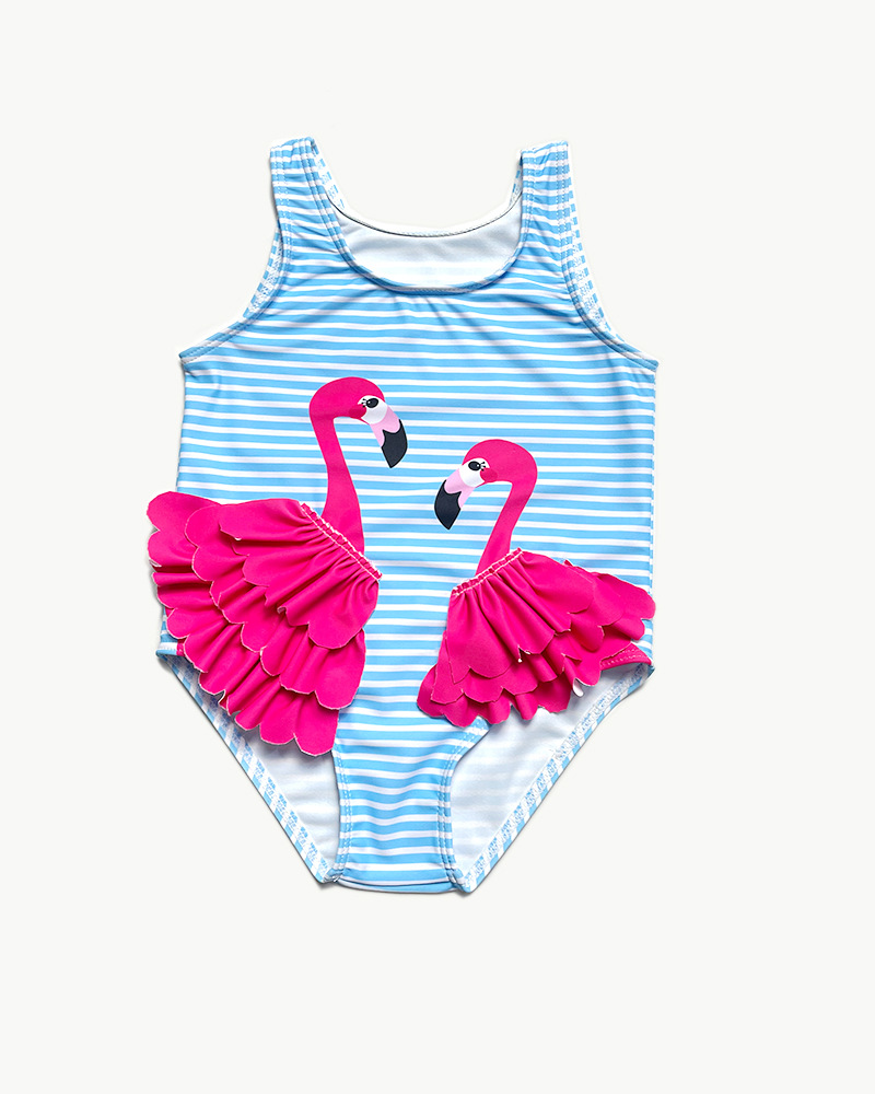 9M-4Y Toddler Girls Striped Flamingo Bikini One Piece Swimsuit Girls Clothes