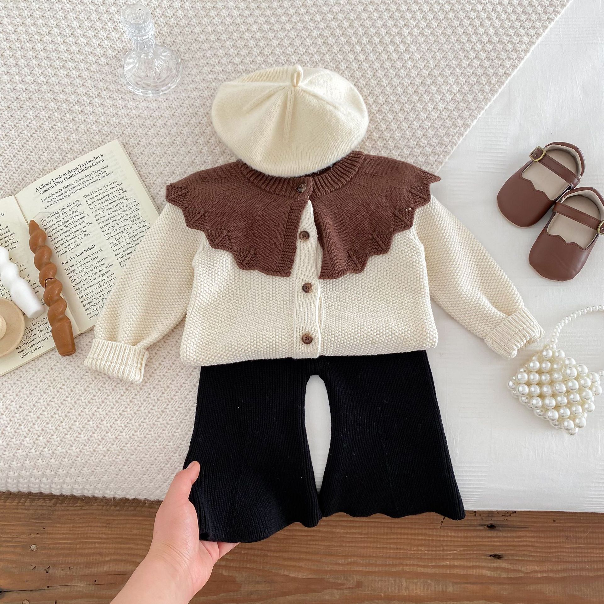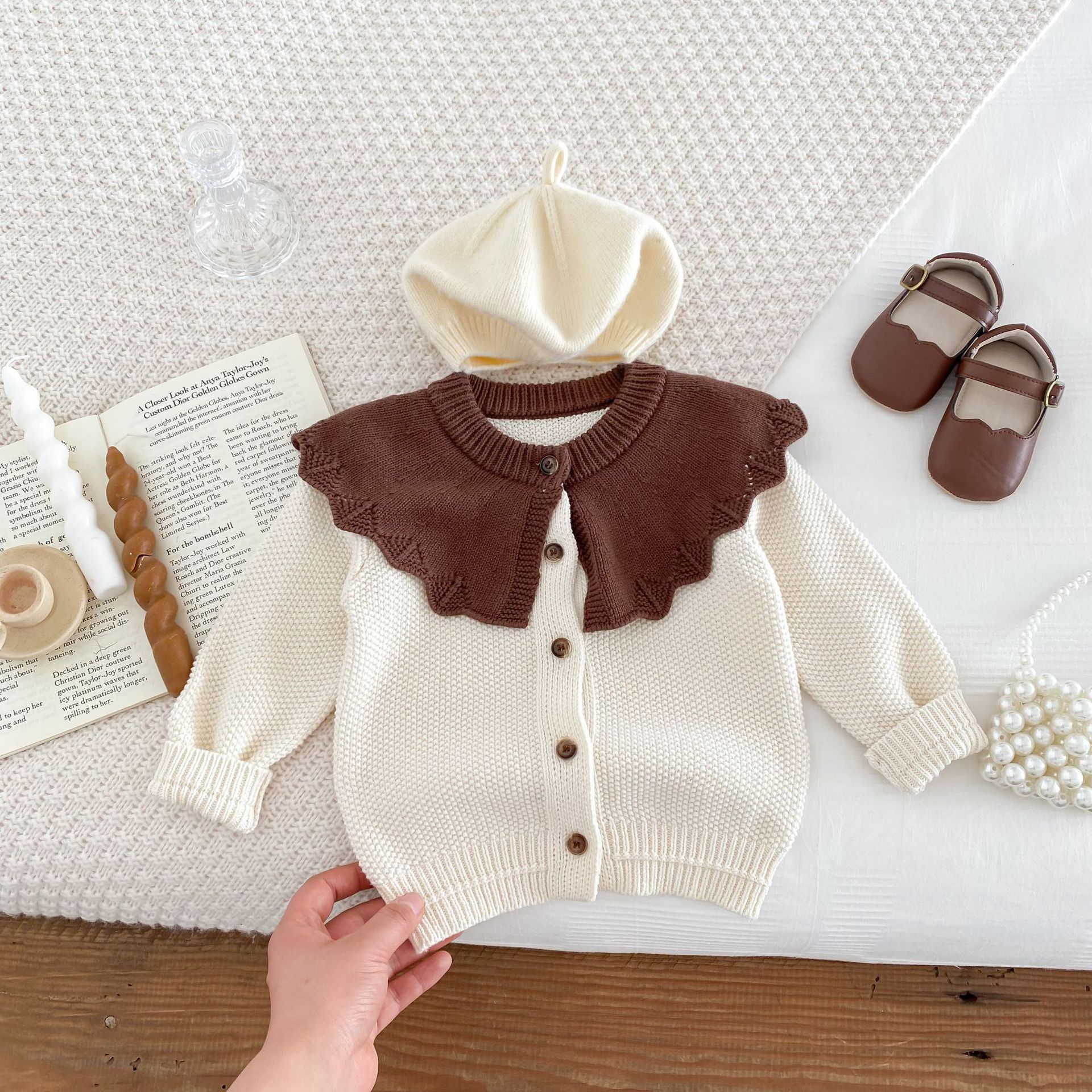 3-24M Baby Girls Retro Large Lapel Sweater Knit Cardigan Baby Clothing