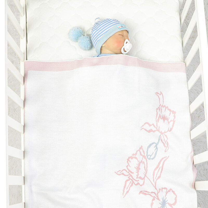 Newborn Unisex Baby Flower Print Knitted Blankets Accessories Vendors