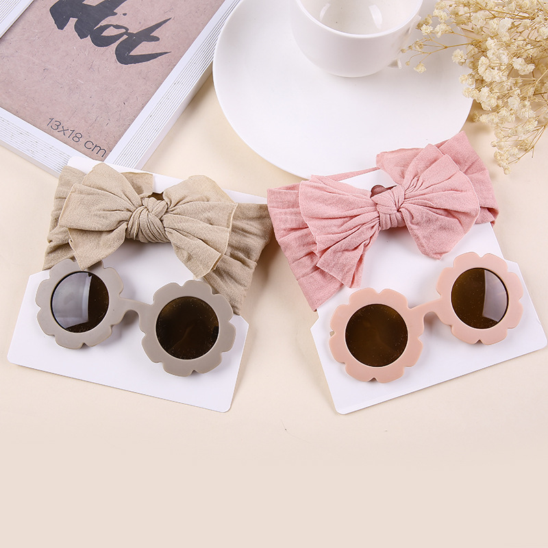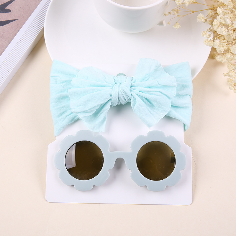 MOQ 2PCS Nylon Solid Bow Headband And Sunglasses 2 Pieces Hair Accessories Sets