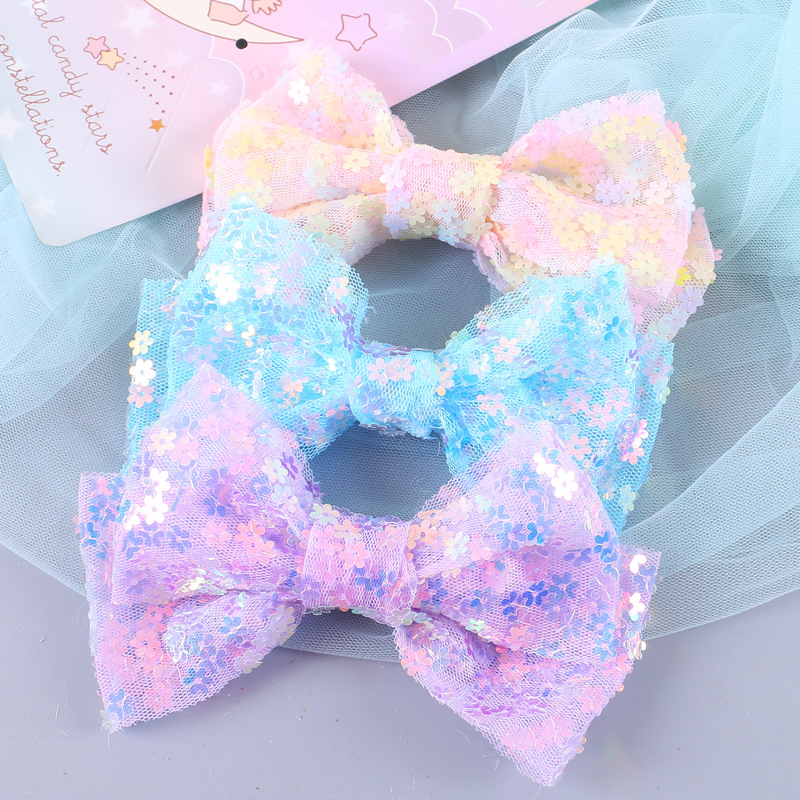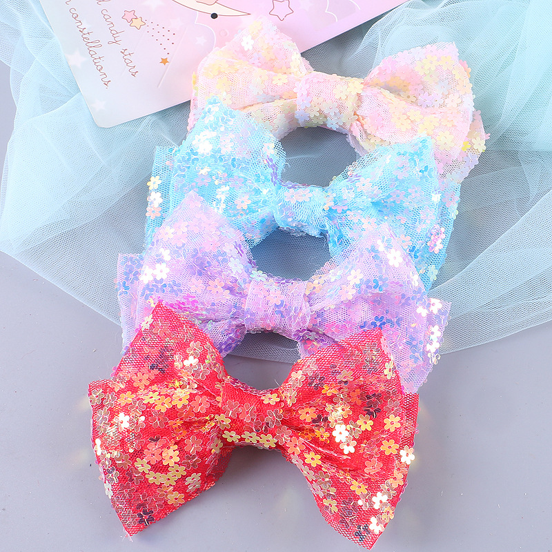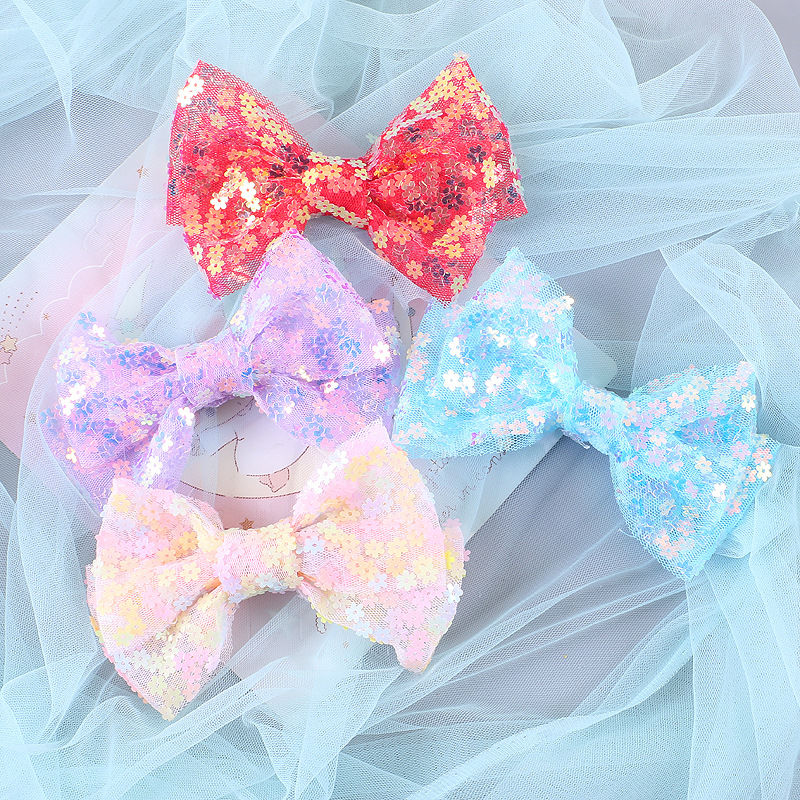 MOQ 5PCS Toddler Girls Bow Sequin Hair Clips