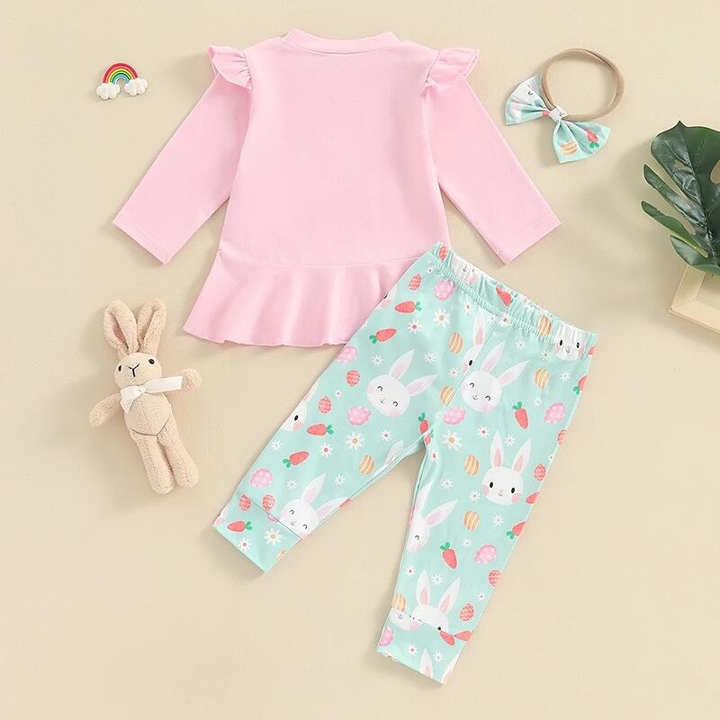 3M-3Y Baby Girls Sets Easter Rabbit Carrot Tops Pants With Headband Baby Clothing