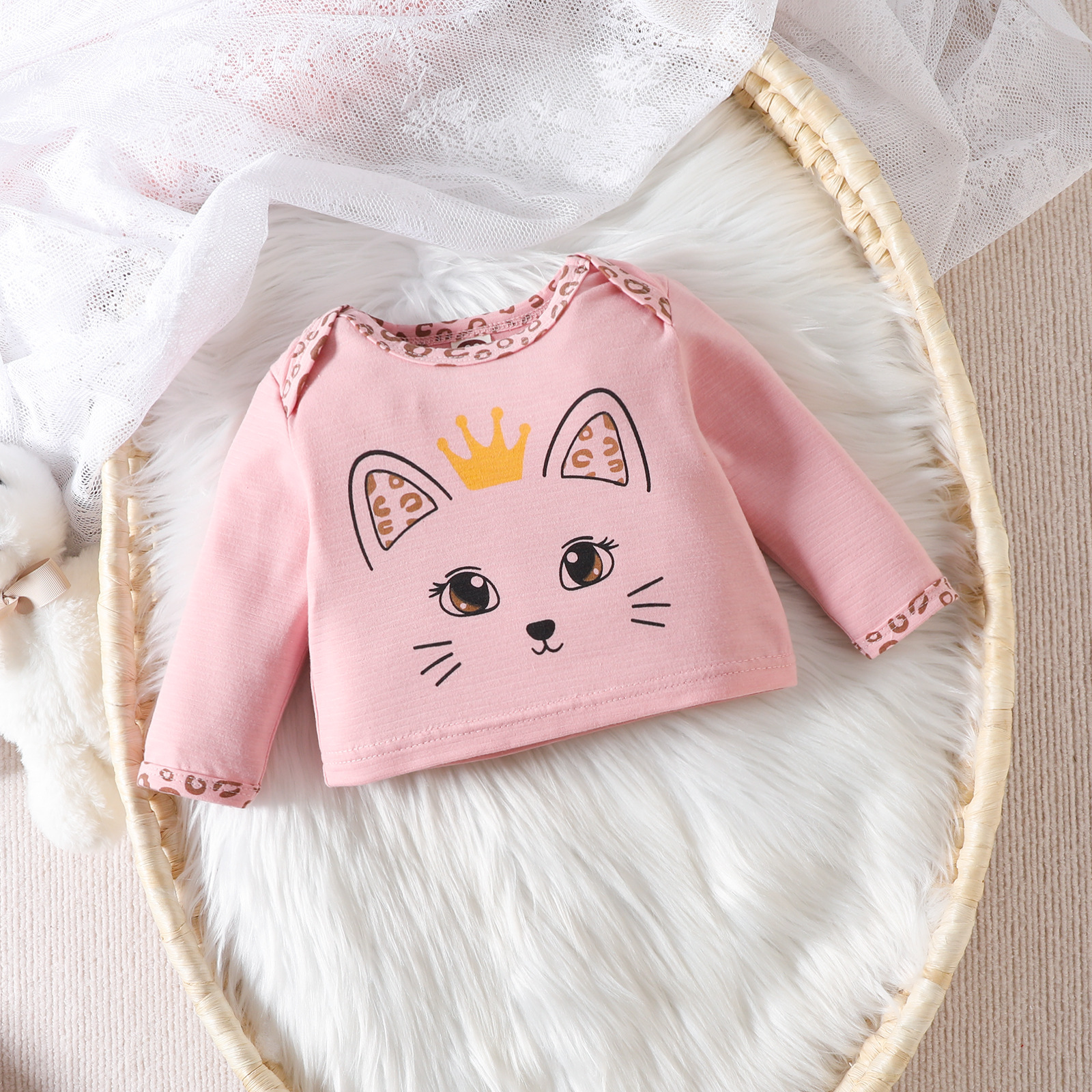 0-9M Baby Girls Cat Print Top Leopard Print Footie Pants Baby Clothing