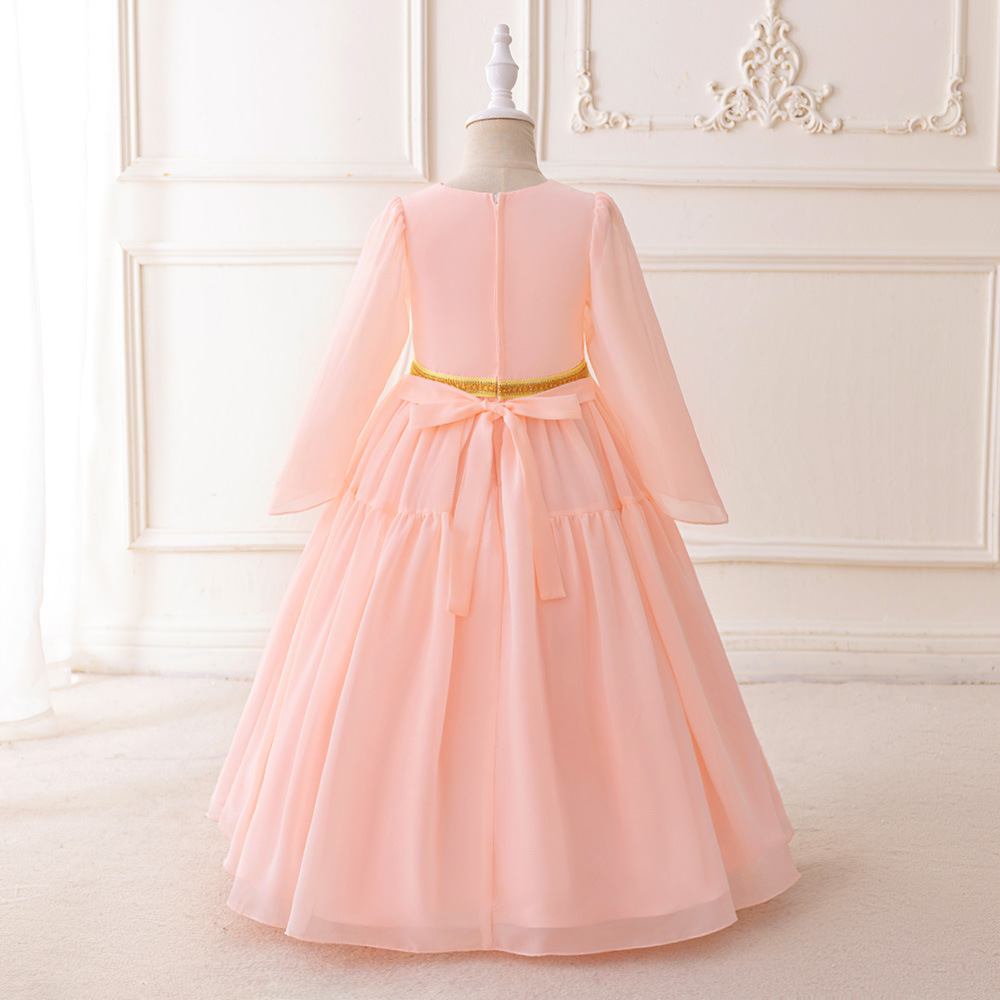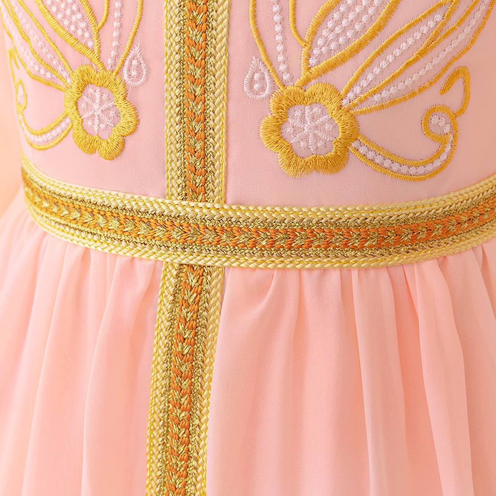 3-7Y Toddler Girls Muslim Robe Embroidery Mesh Maxi Dresses Girls Clothes