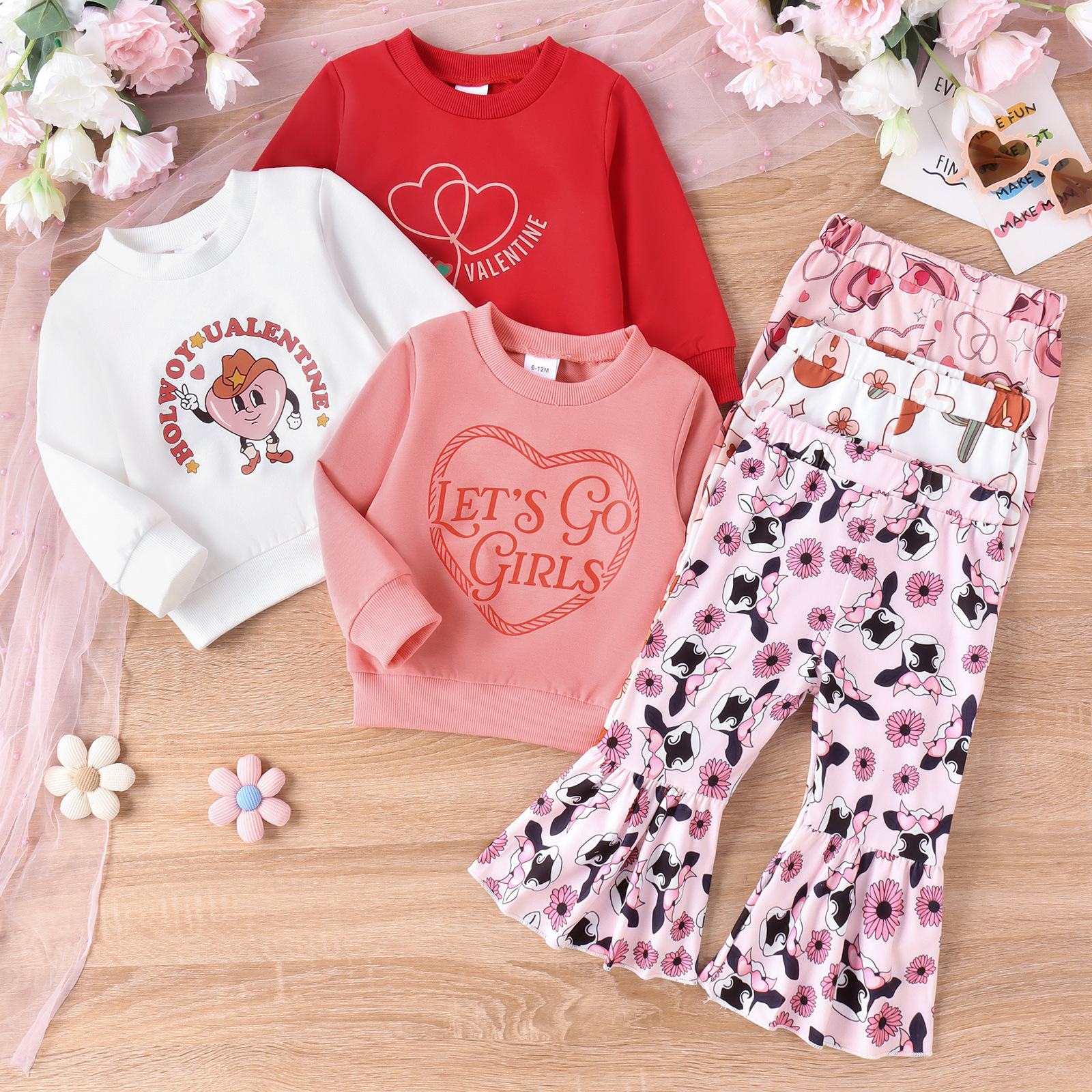 9M-4Y Toddler Girls Sets Valentine's Day Sweatshirts Pants  Girls Clothes