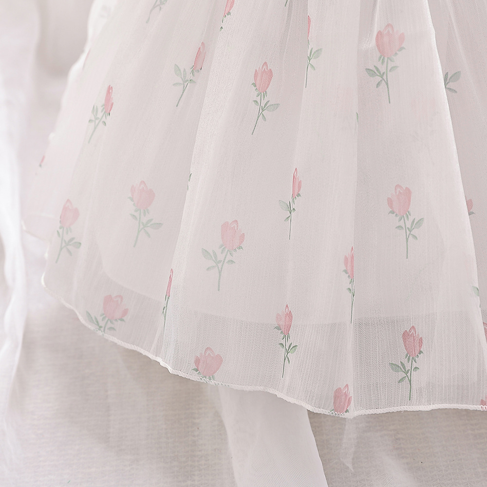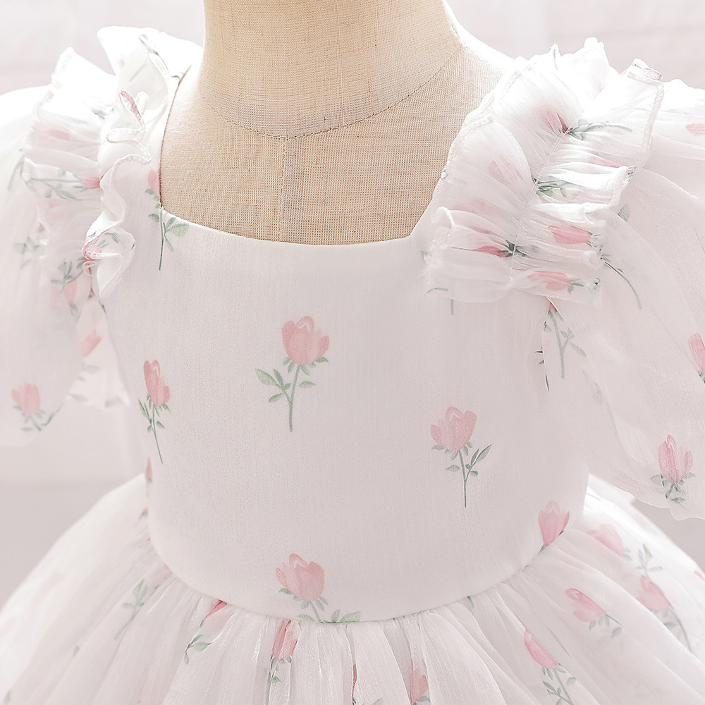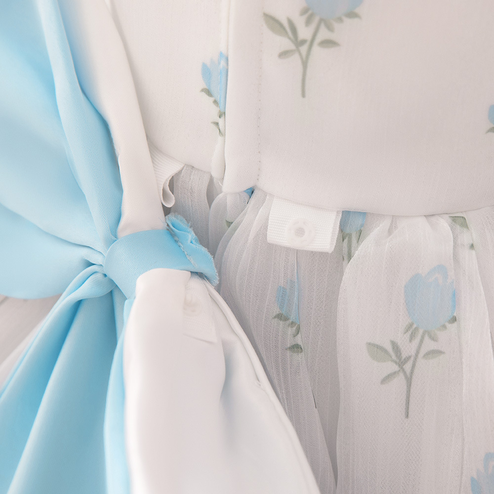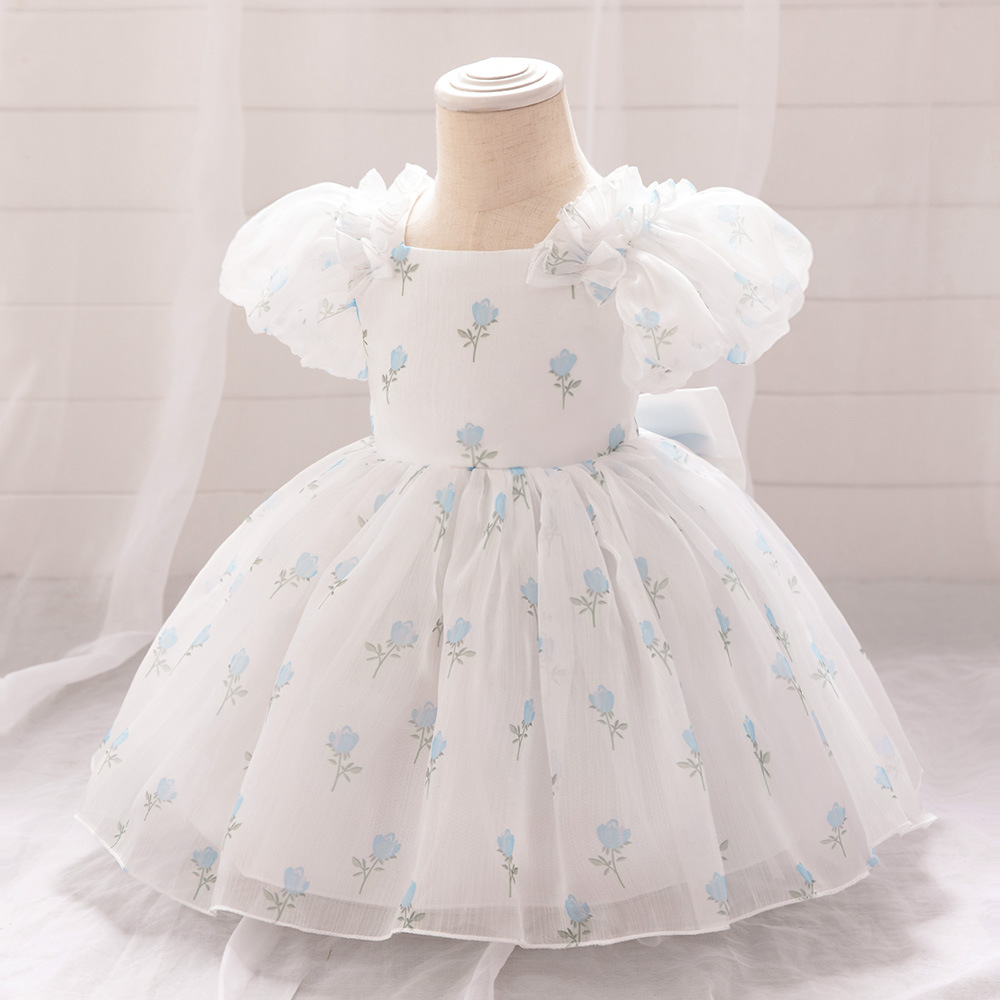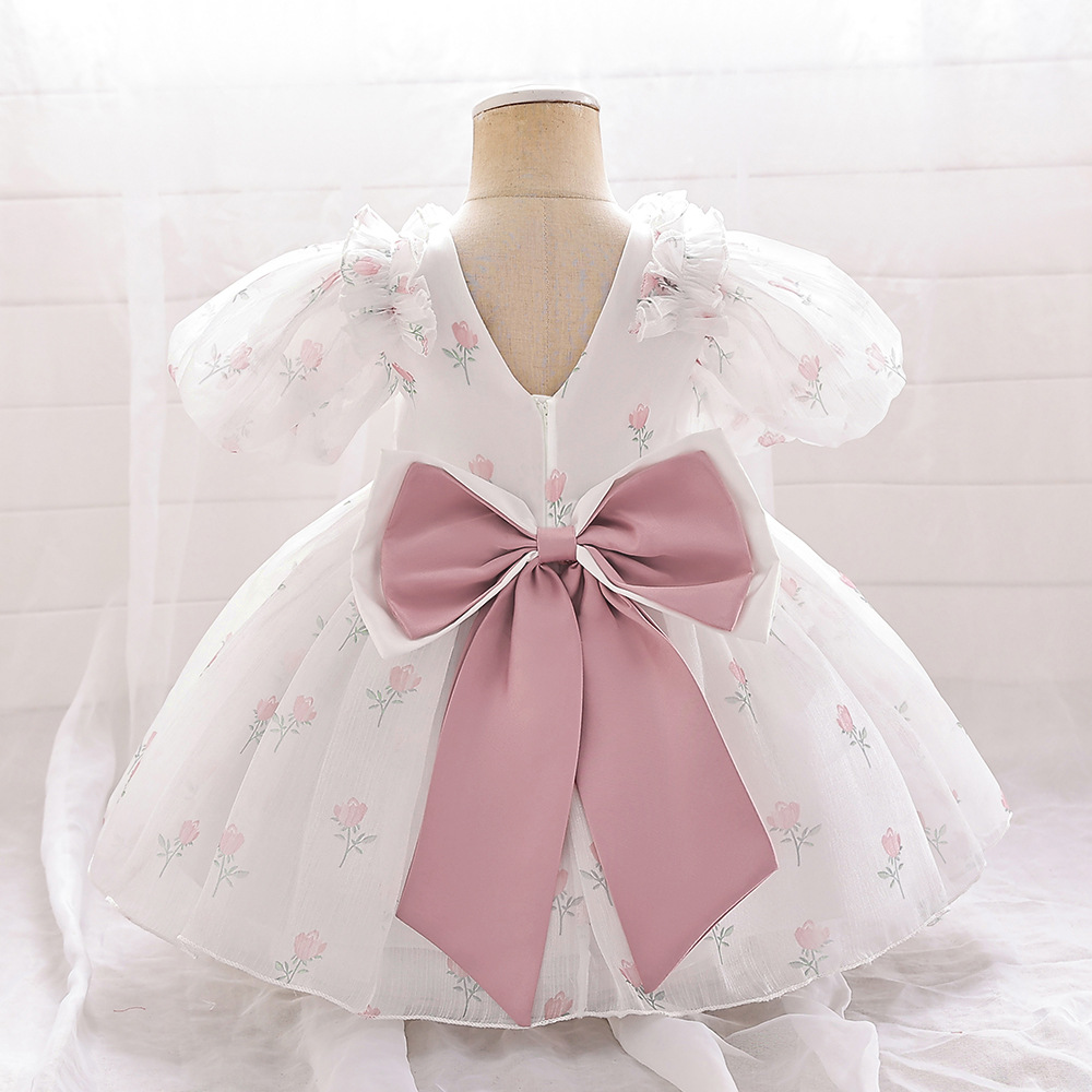12M-3Y Toddler Girls Bow Back Puff Sleeve Floral Dresses Girls Clothes