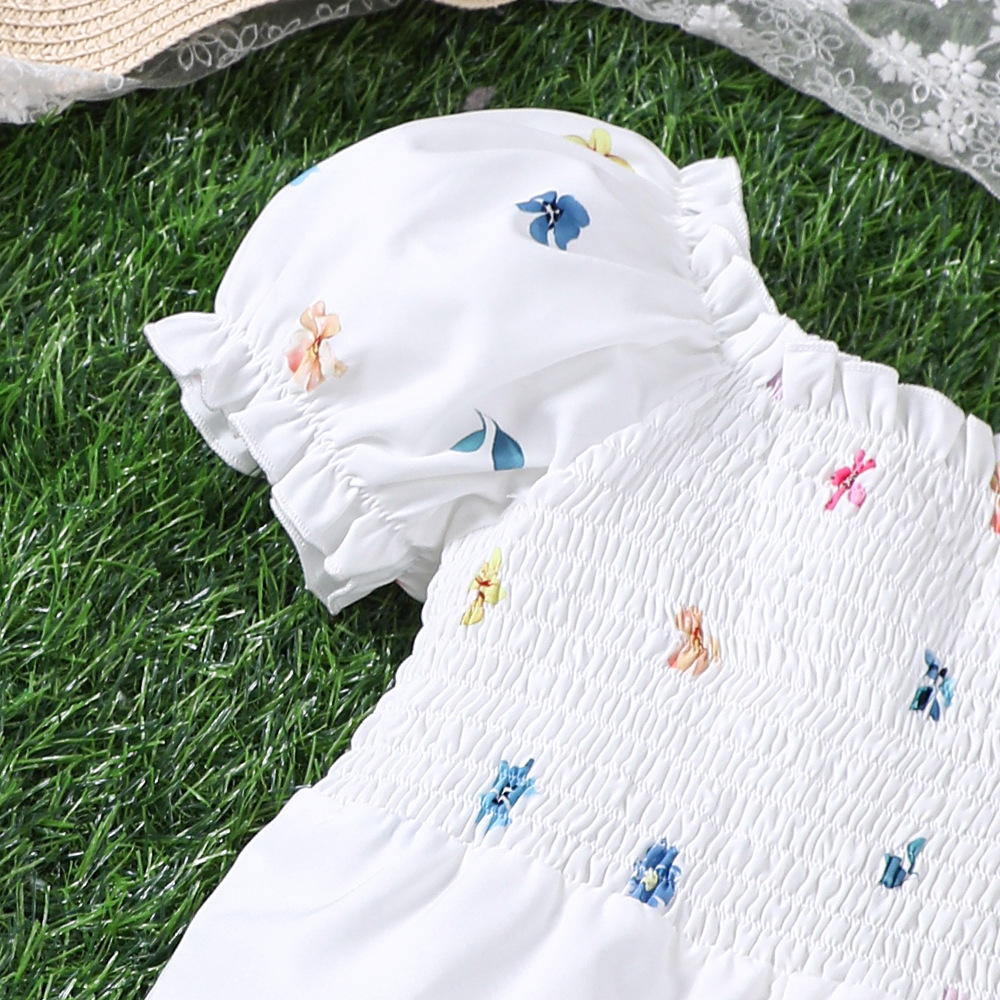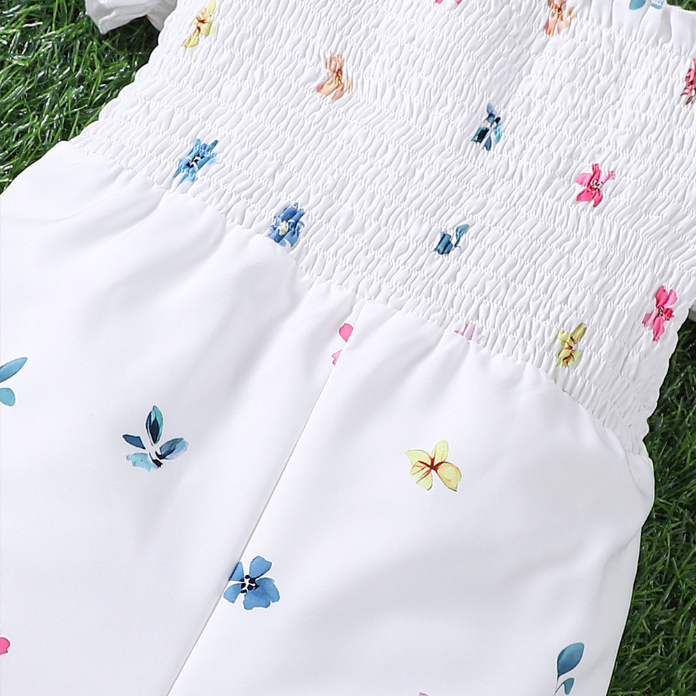 18M-6Y Toddler Girls Floral Puff Sleeve Jumpsuits Girls Clothes