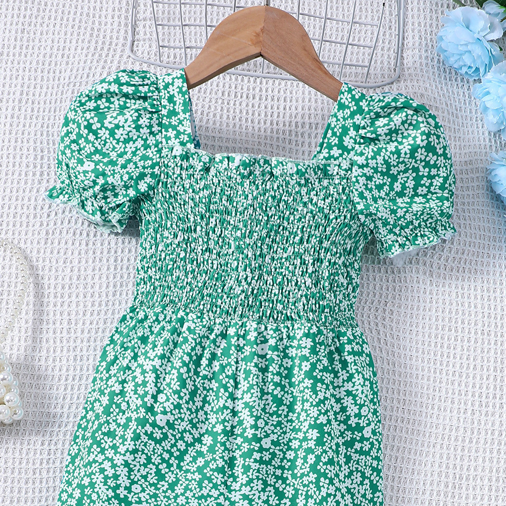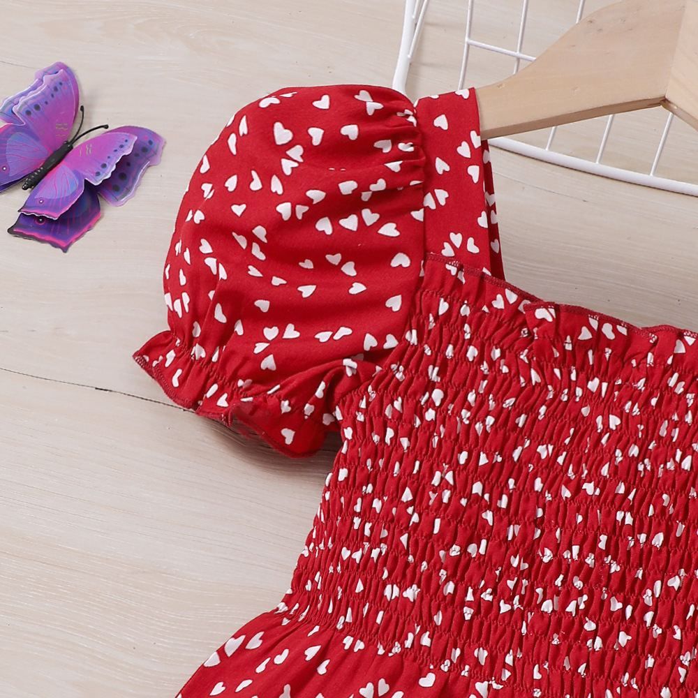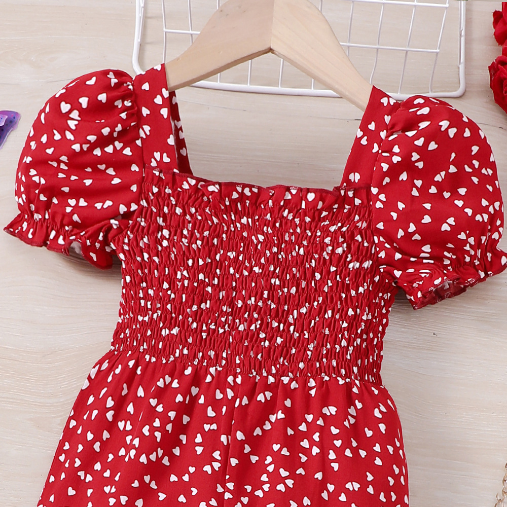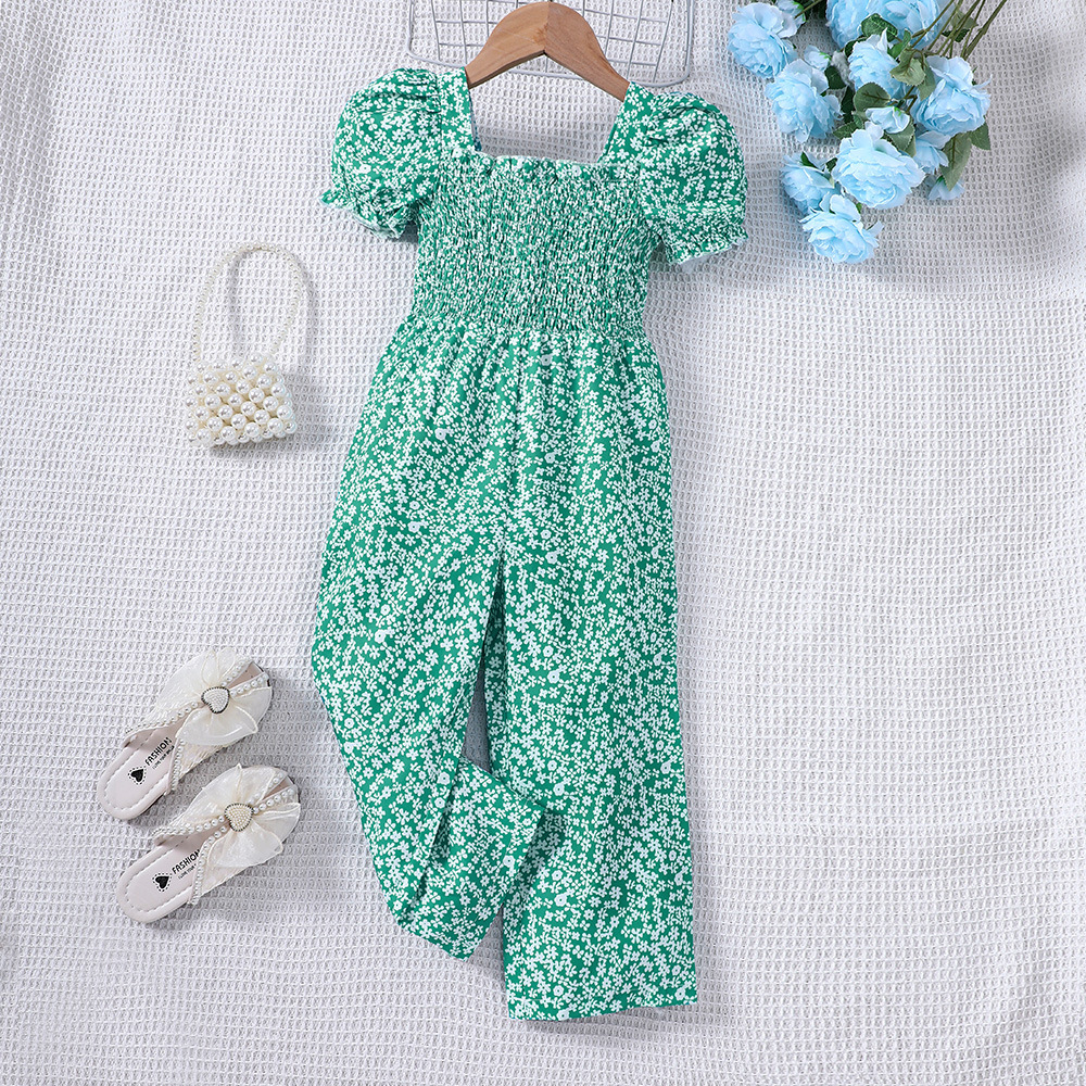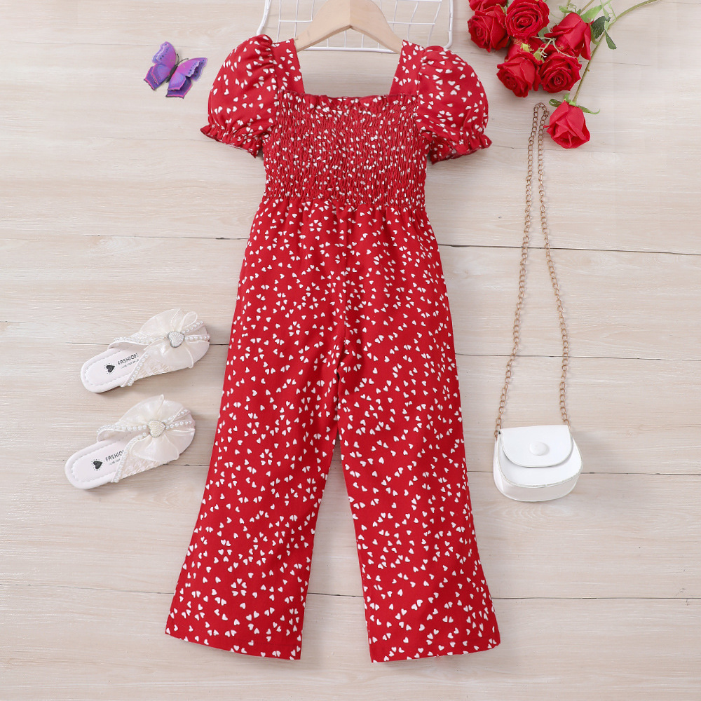 18M-6Y Toddler Girls Floral Heart Print Puff Sleeve Jumpsuit Girls Clothes