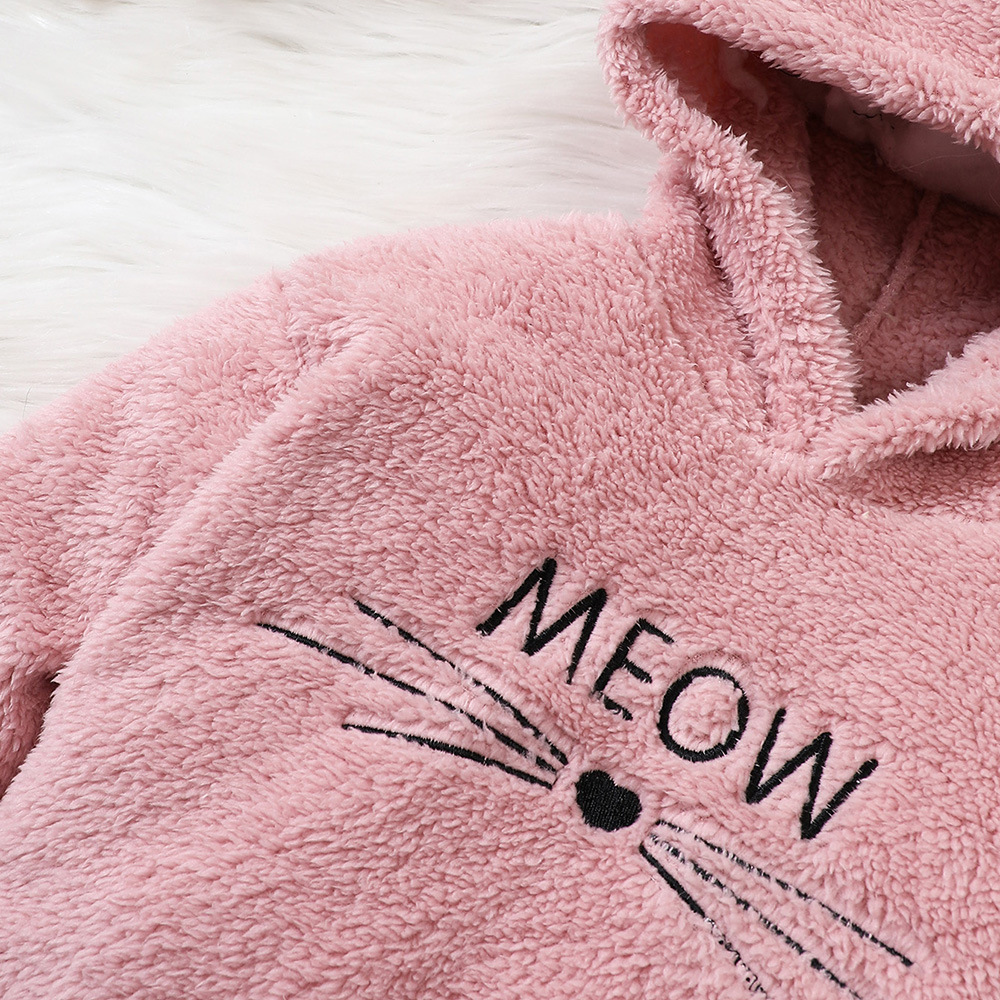 18M-6Y Toddler Girls Cartoon Kitten Embroidered Plush Hooded Jacket Girls Clothes