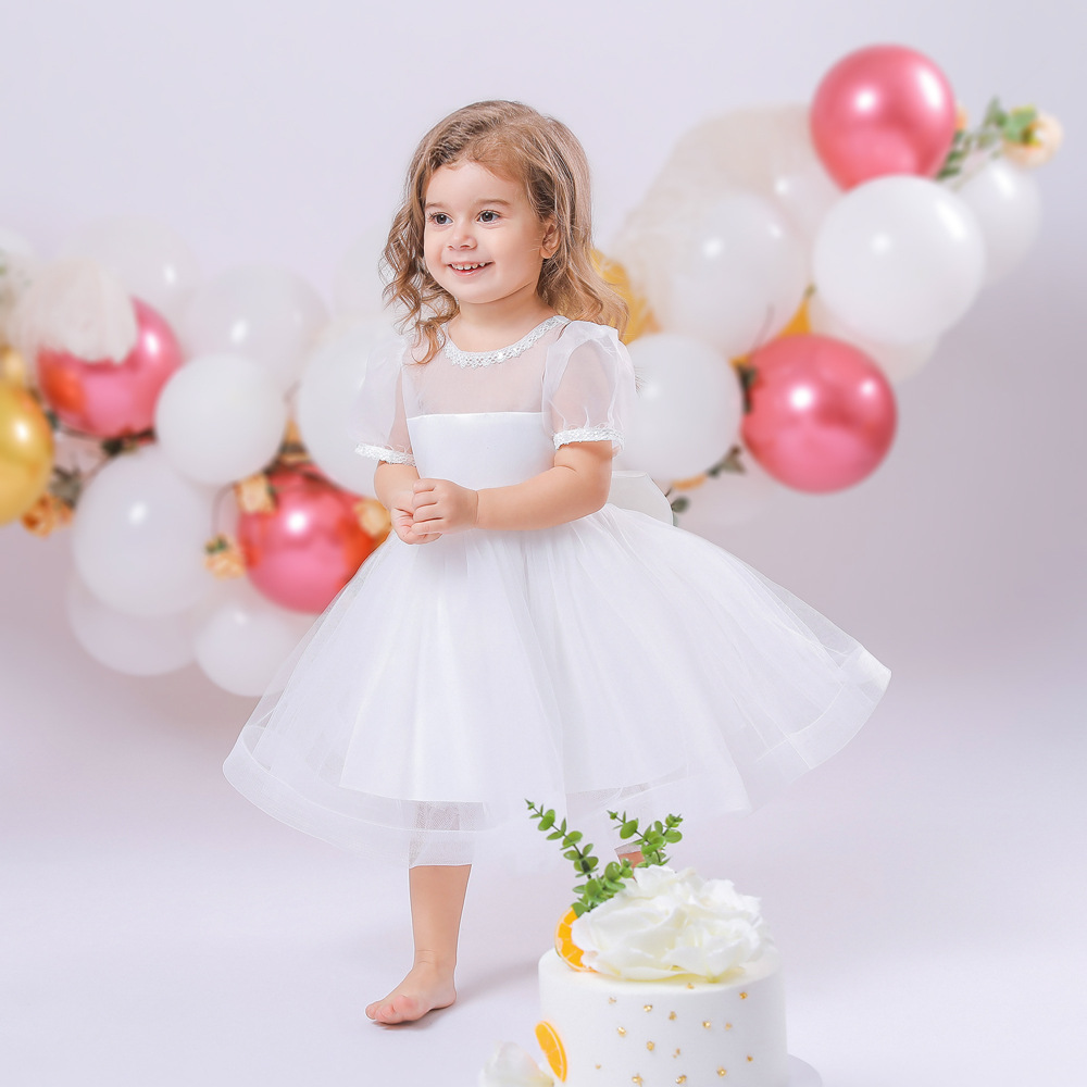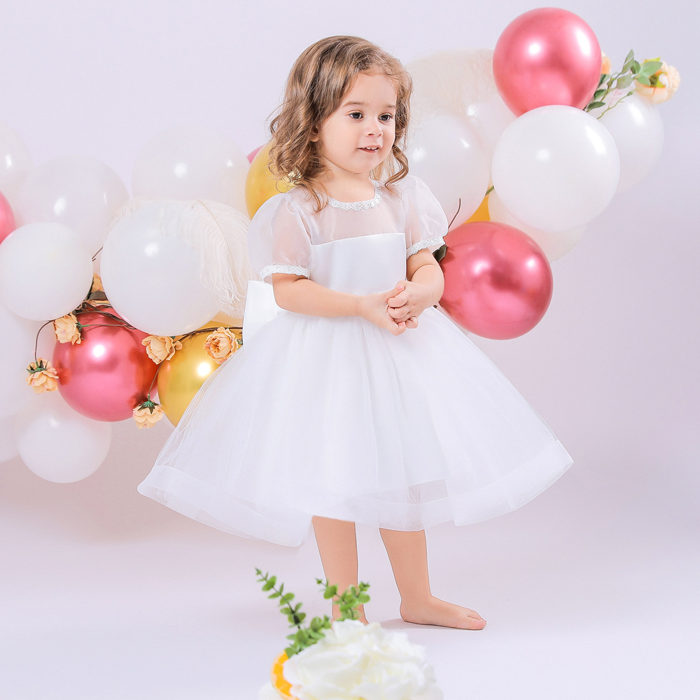 9M-4Y Toddler Girls Puff Sleeve Mesh Party Dresses Girls Clothes