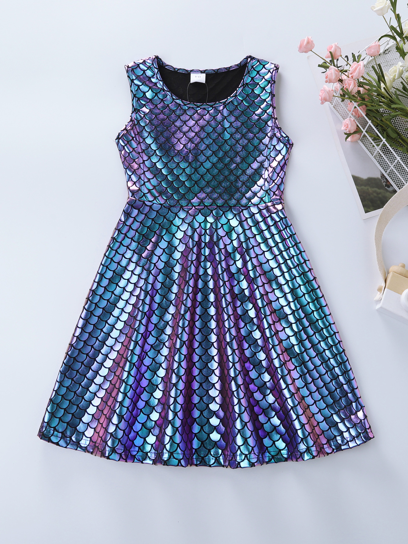 3-8Y Kids Girls Sleeveless Mermaid Scale Party Dresses Kids Clothing
