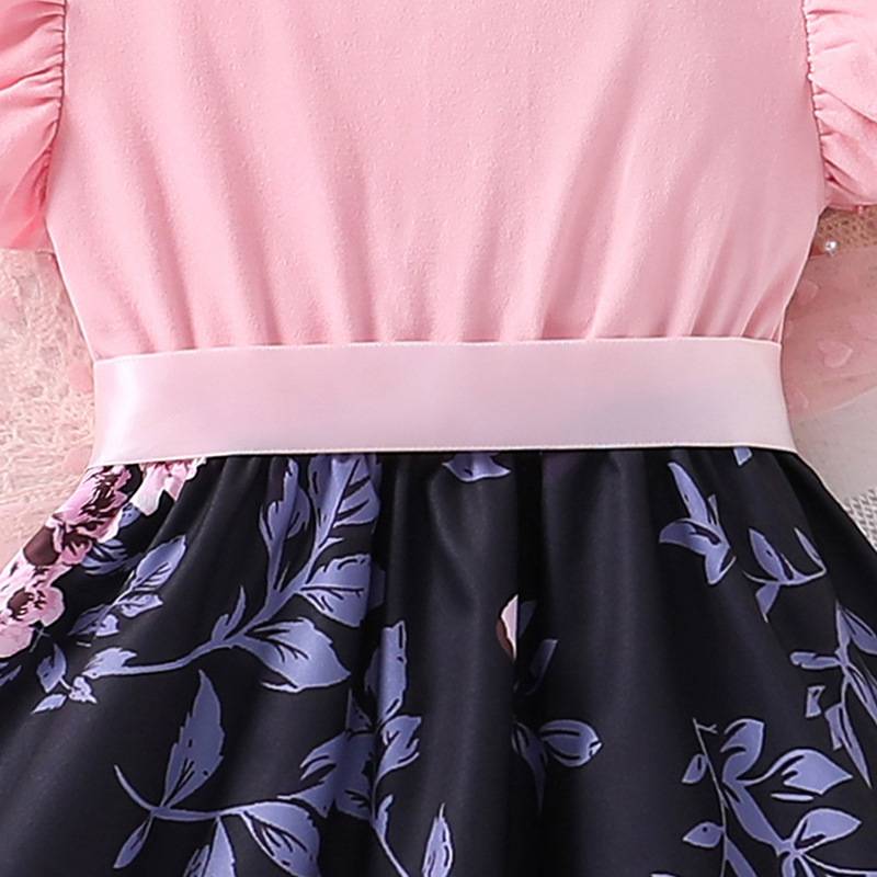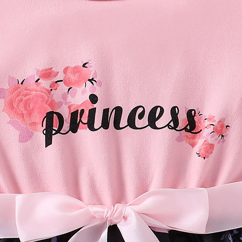 3-7Y Toddler Girls Letter Splicing Floral Dresses With Belt Girls Clothes