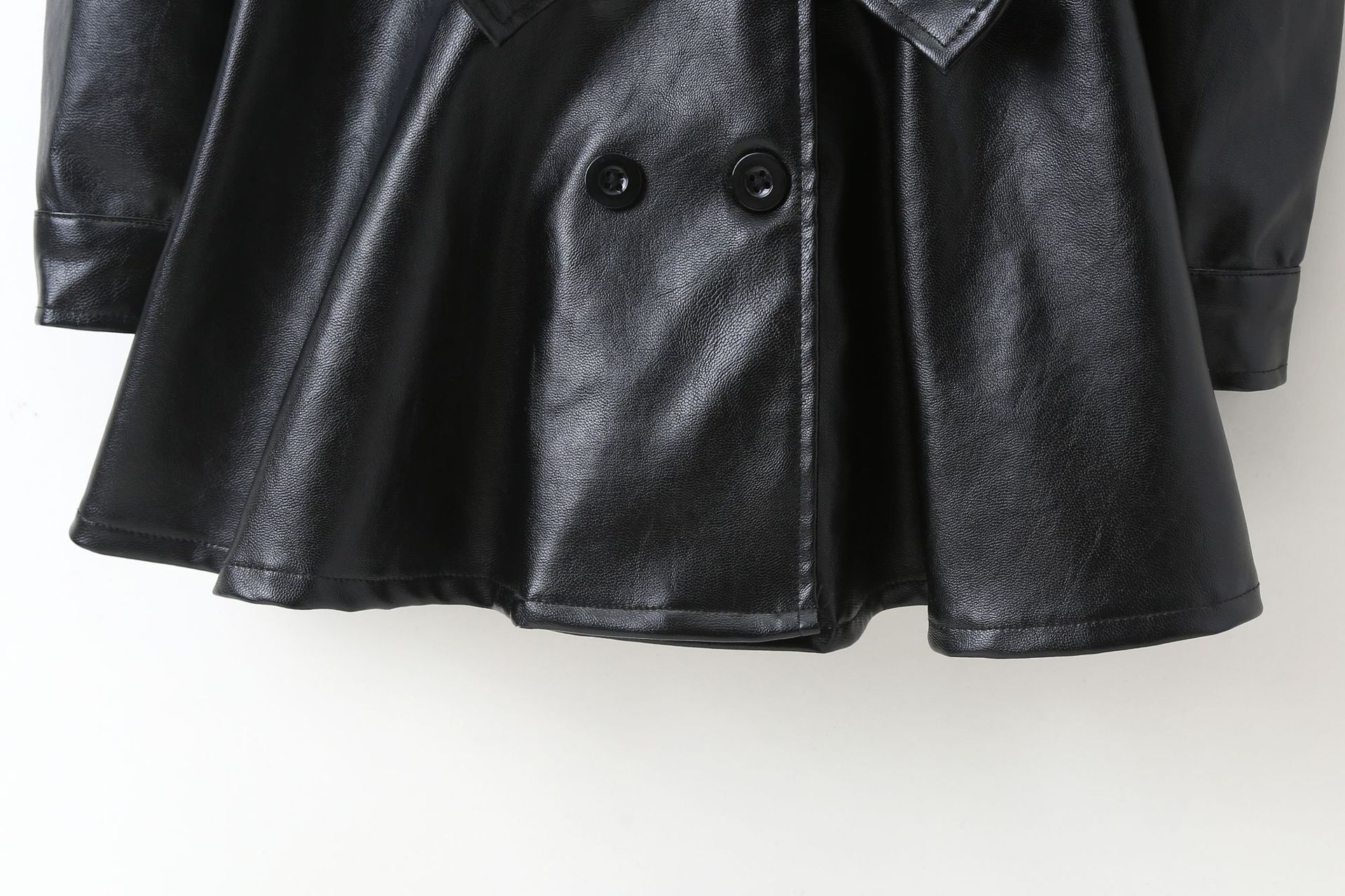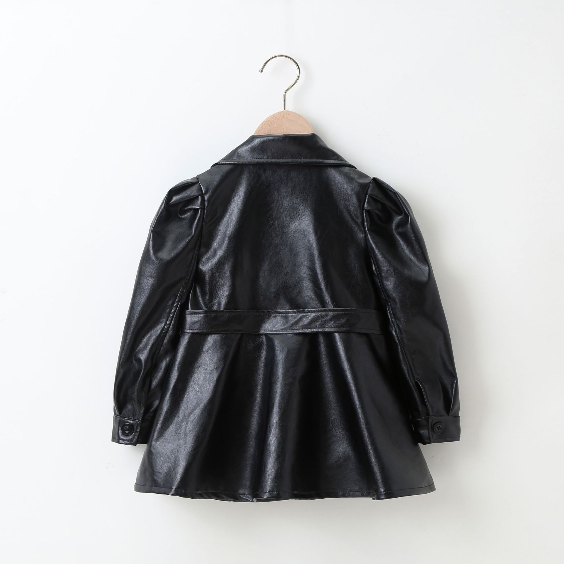 2-6Y Kids Girls Lapel PU Leather Jackets With Belt  Girls Fashion Clothes