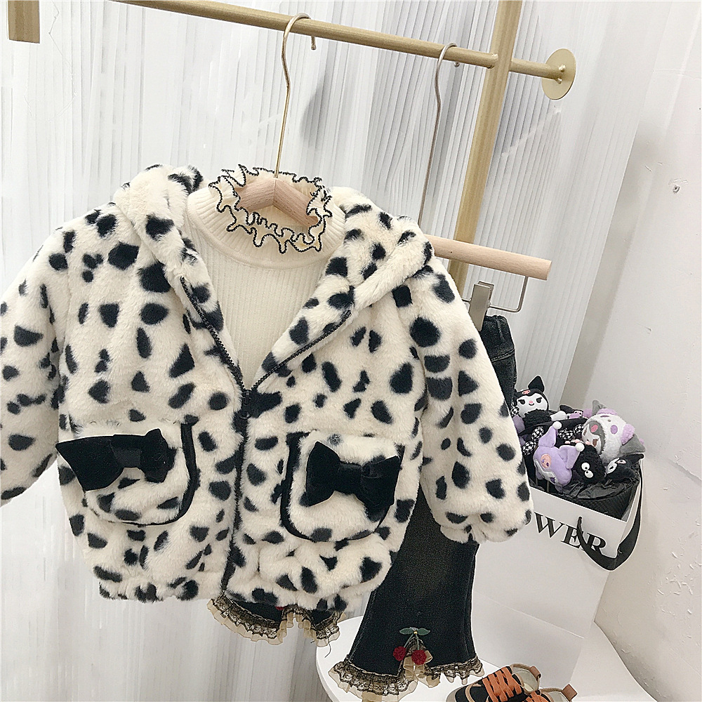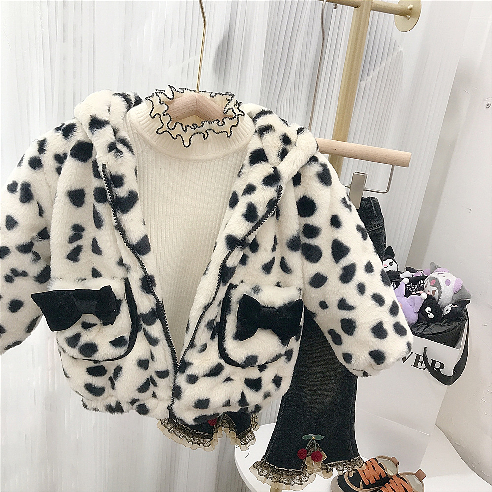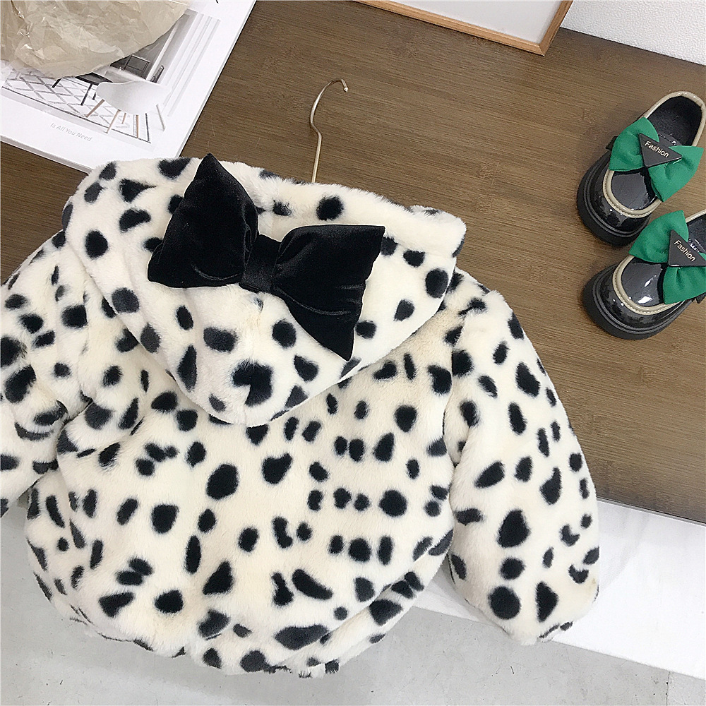 18M-7Y Toddler Girls Bow Leopard Print Hooded Plus Fleece Coats Girls Clothes