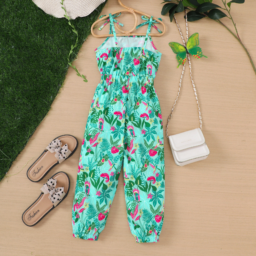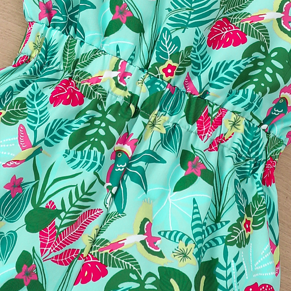 18M-6Y Toddler Girls Vacation Tropical Rainforest Leaf Sling Jumpsuits Girls Clothes