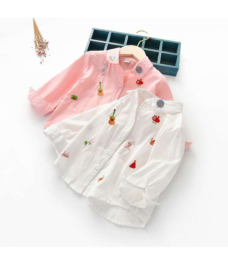 18M-7Y Toddler Girls Long Sleeve Embroidery Shirts Girls Fashion Clothes