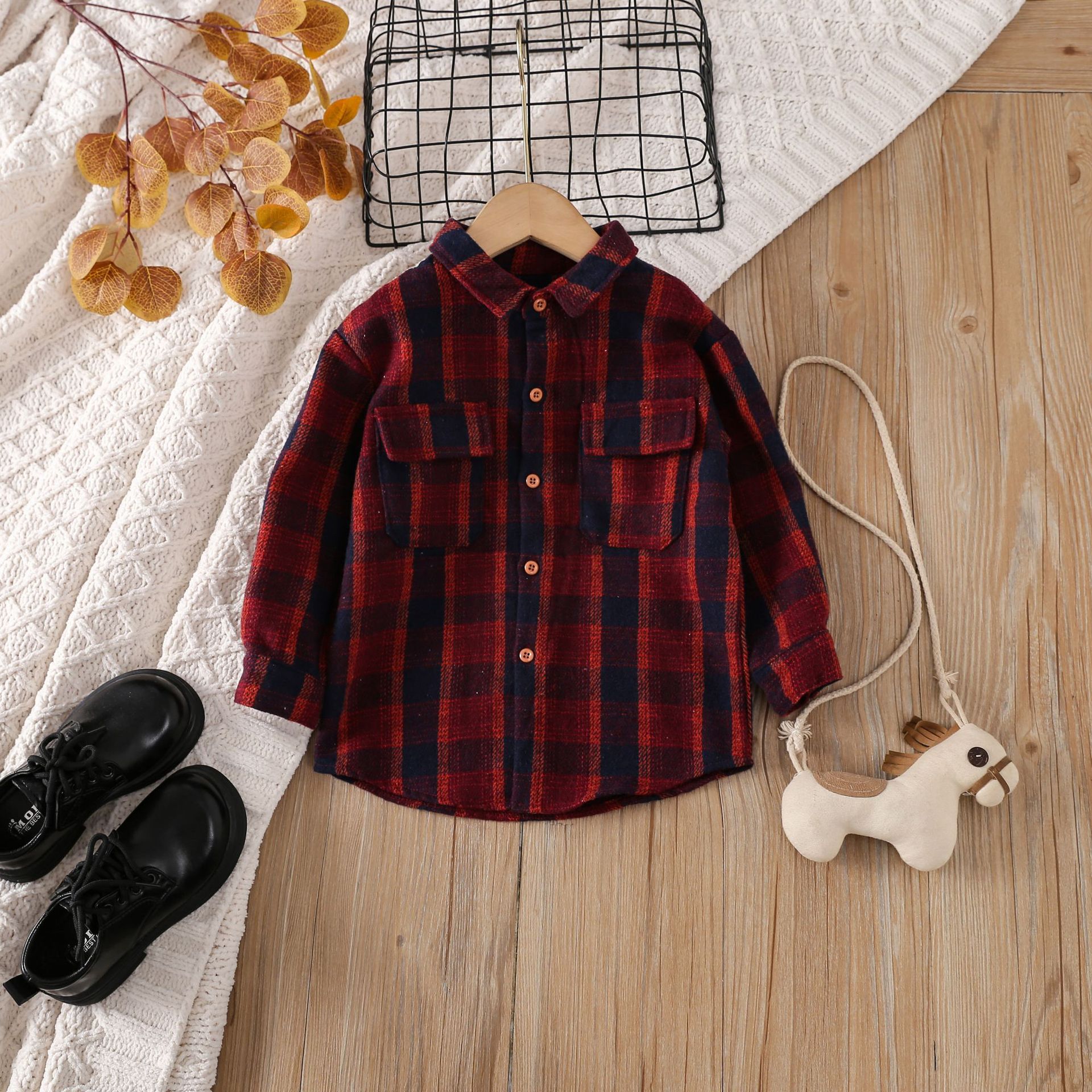 2-7Y Toddler Plaid Shirt Splicing Casual Bottoming Shirt Toddler Boutique Clothing