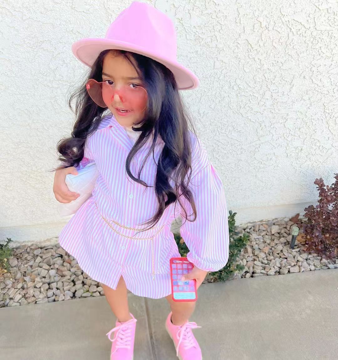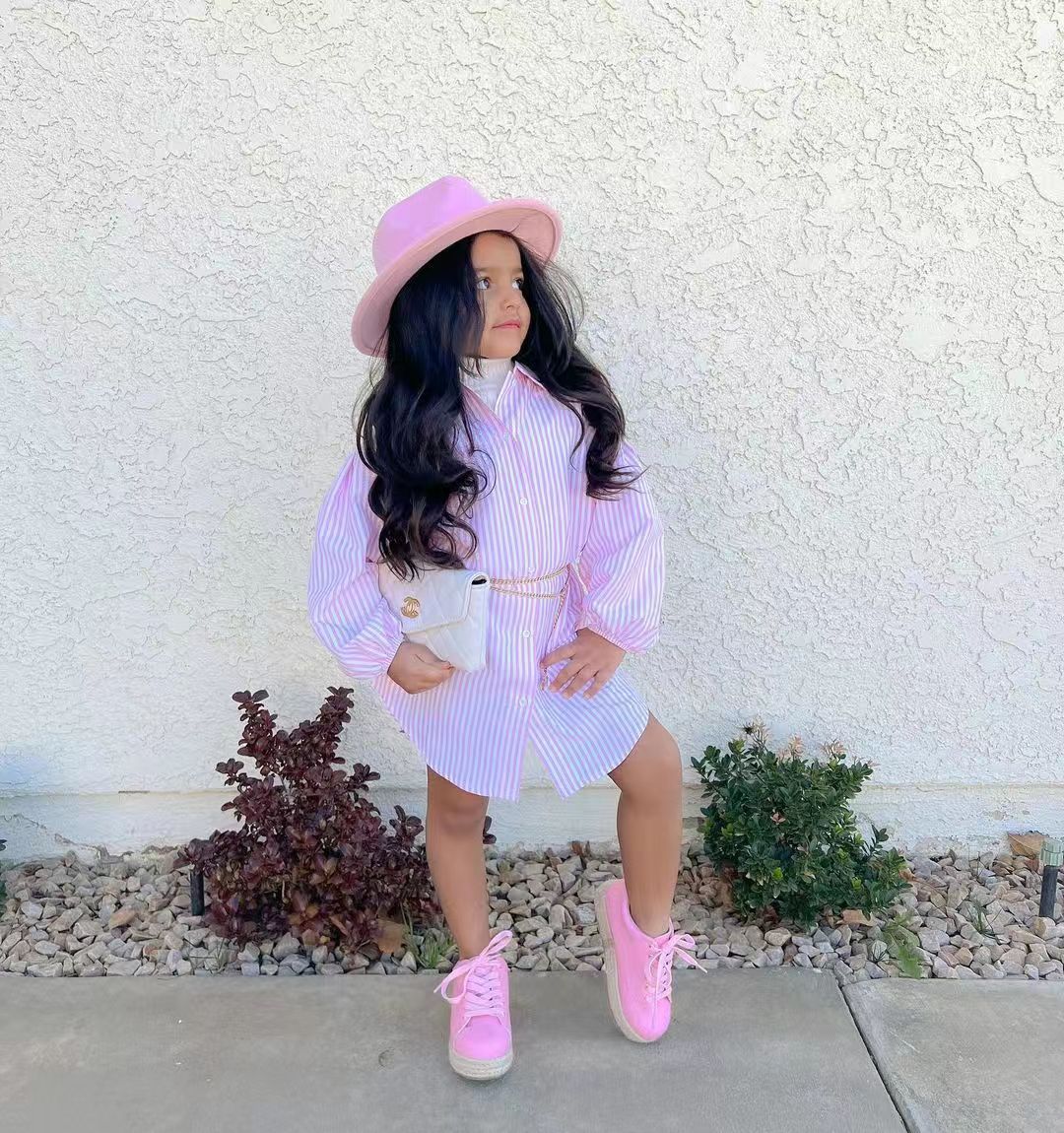 18M-7Y Toddler Girls Pink Striped Shirts Girls Fashion Clothes