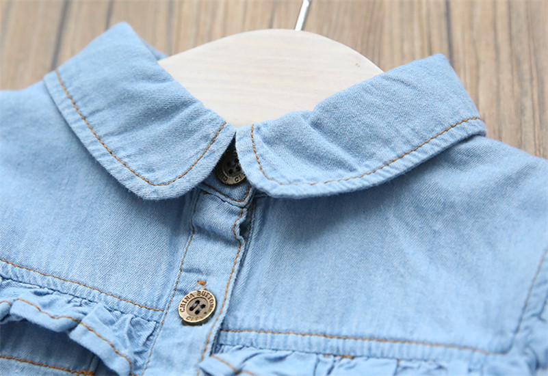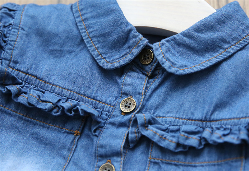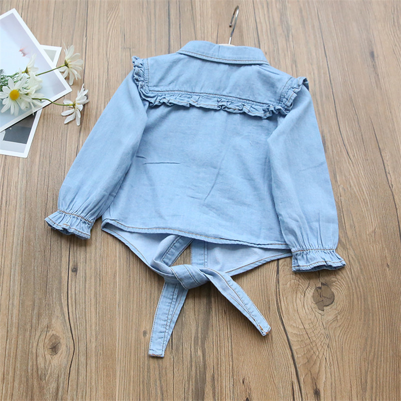 18M-7Y Toddler Girls Vintage Ruffle Knotted Denim Shirts Girls Clothes