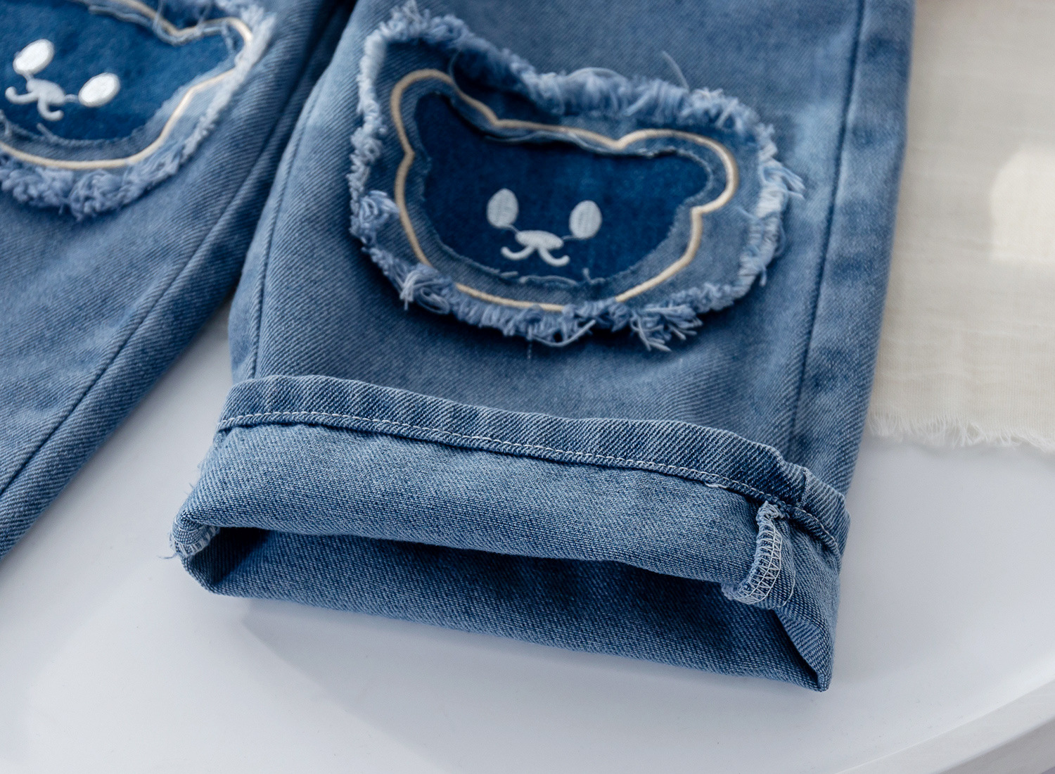 9M-6Y Toddler Girls Bear Denim Straight Pants Girls Clothes