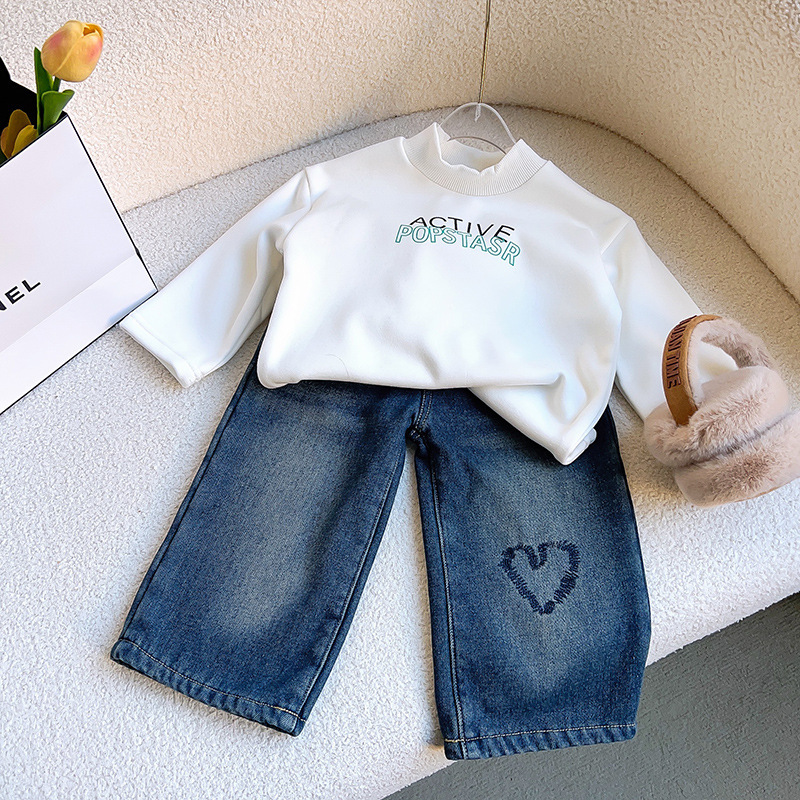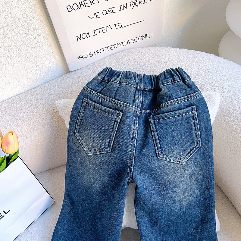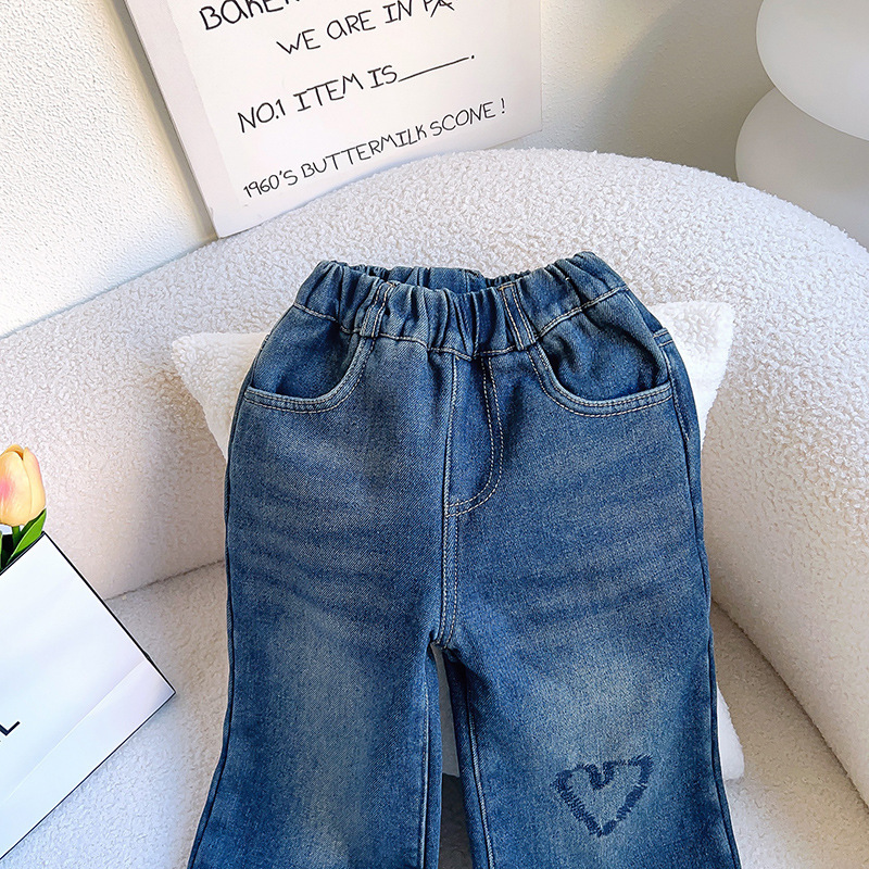 18M-7Y Toddler Girls Love Wide Leg Straight Denim Trousers Girls Clothes