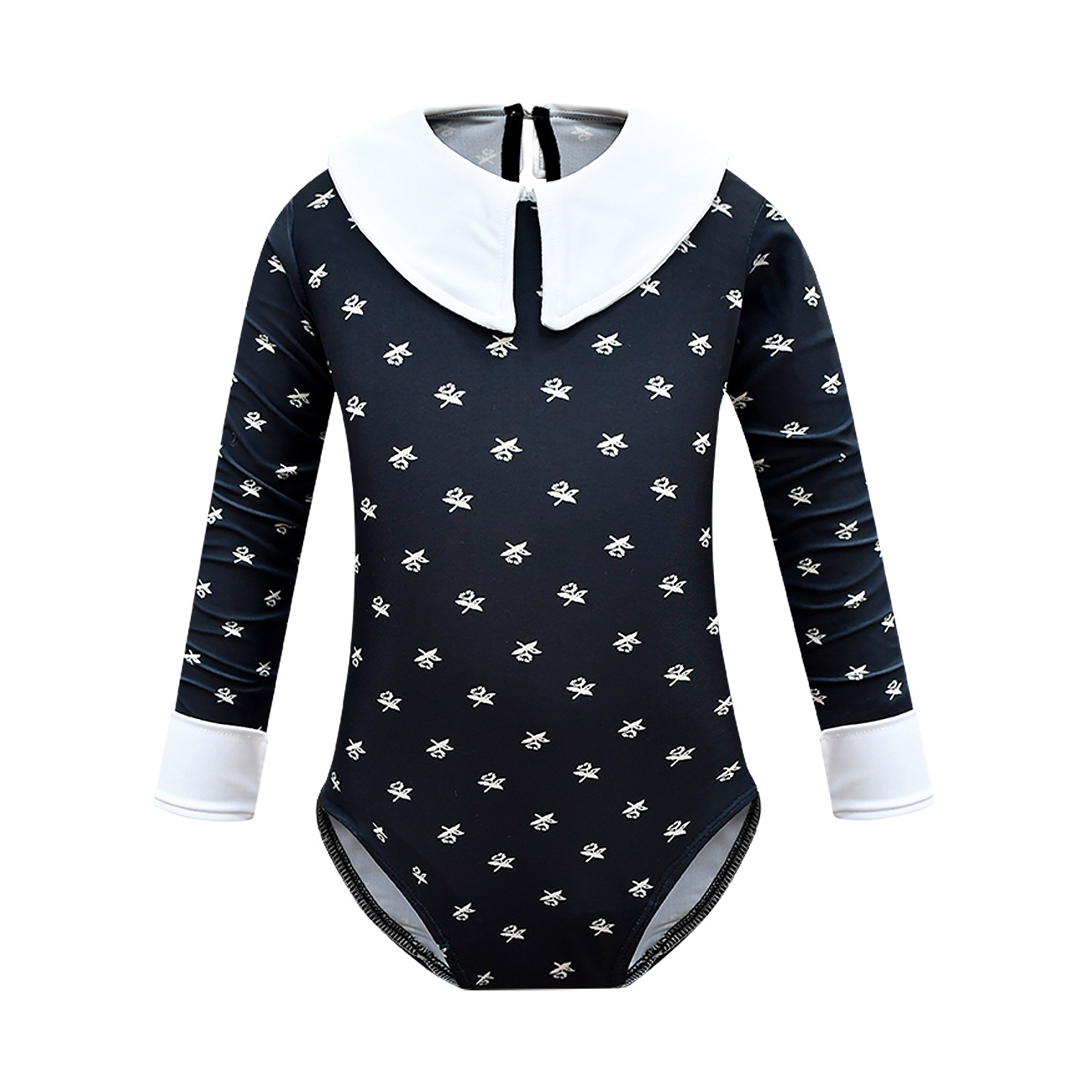 3-9Y Toddler Girl Cartoon Print Lapel Long-Sleeved One-Piece Swimsuit Clothing Kidswear