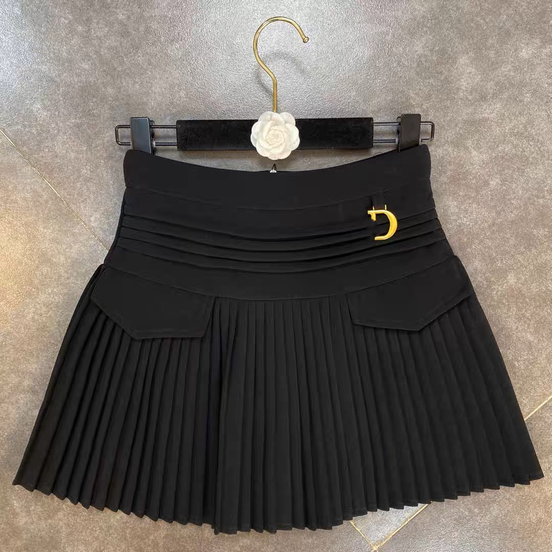 4-12Y Kids Girls Velvet Pleated Skirt With Letter Metal Buckle Clothing Kidswear