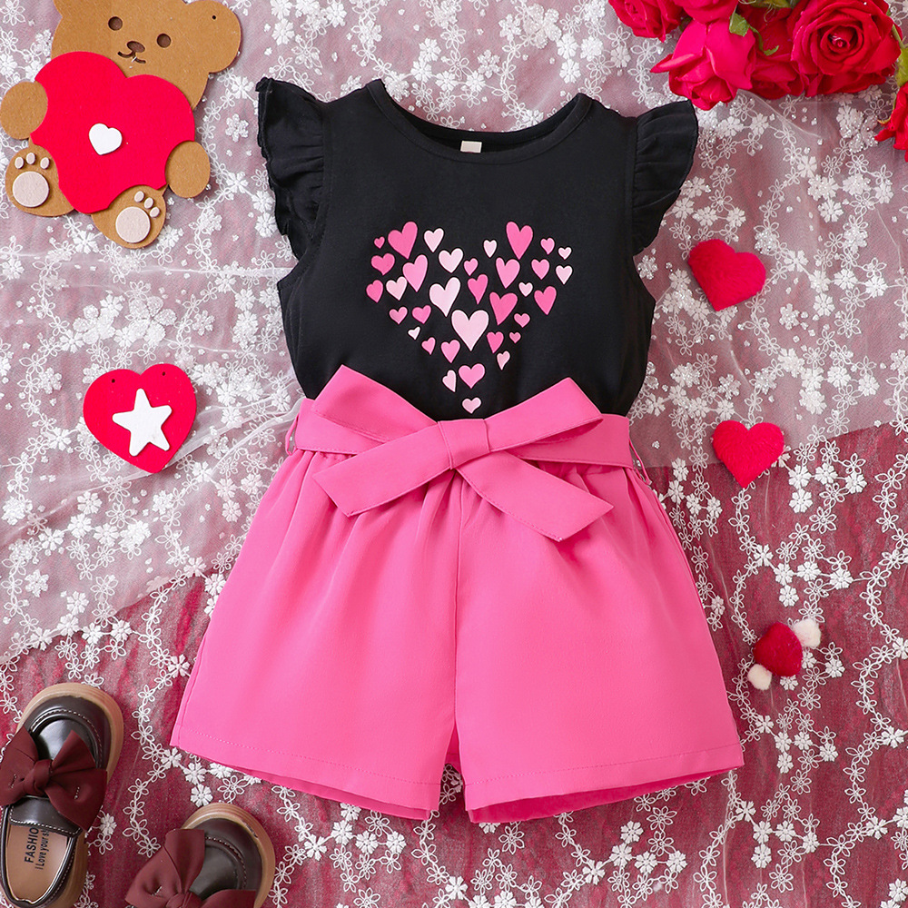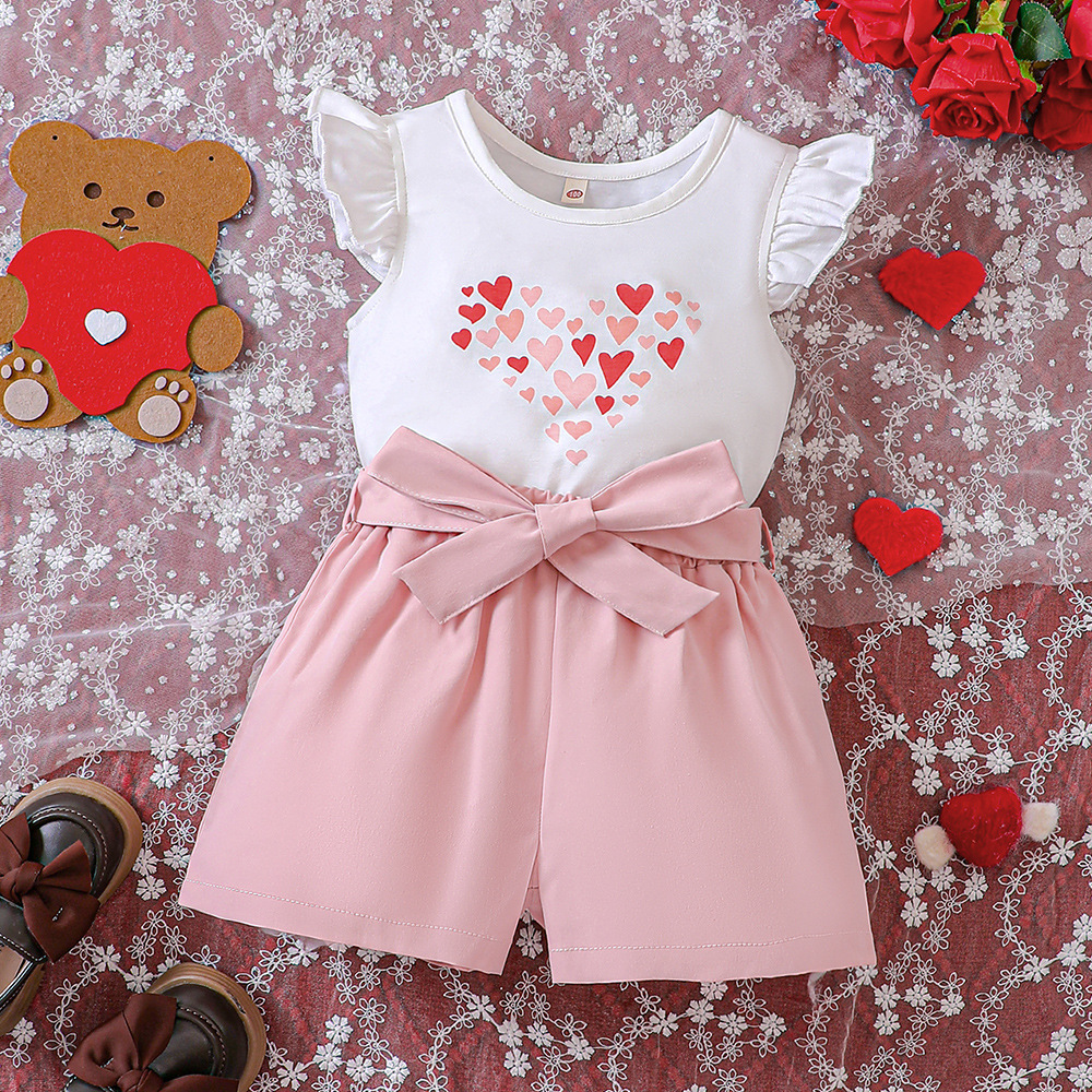 18M-6Y Toddler Girls Valentine's Day Love Printed T-Shirt Shorts Set Girls Clothes