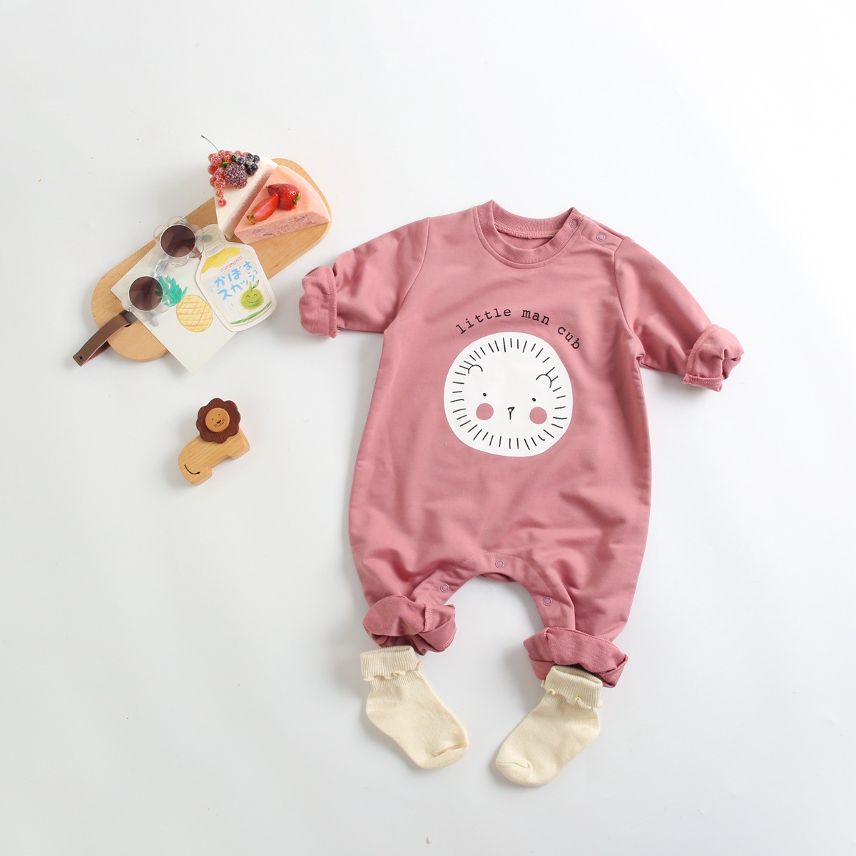 3M-3Y Smile Cartoon Print Solid Color Onesies Romper Jumpsuit Baby  Clothing