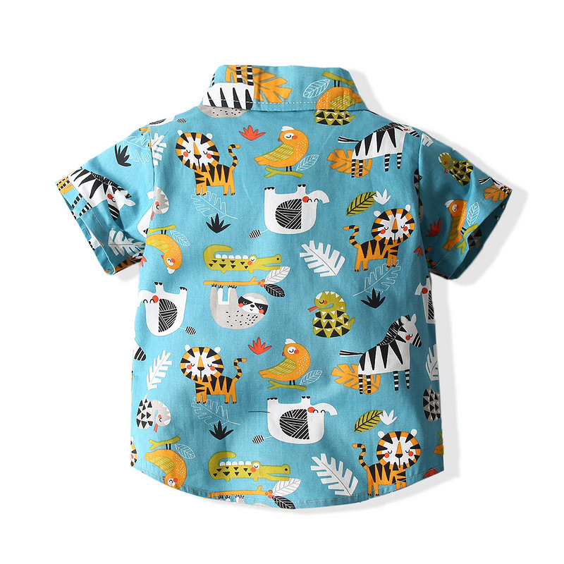 18M-6Y Toddler Boys Cartoon Print Short Sleeve Shirt Shorts Gentleman Suit Boys Clothes