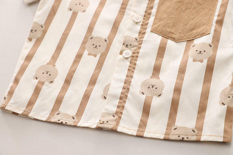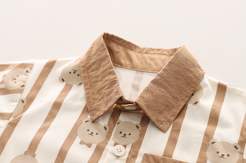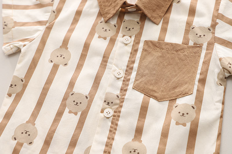 12M-5Y Toddler Boys Sets Striped Bear Shirts And Shorts Girls Clothes