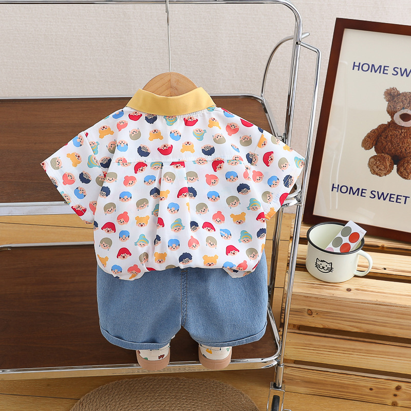 12M-5Y Toddler Boys Sets Colorblock Collared Short-Sleeved Shirts Two-Piece Sets Girls Clothes