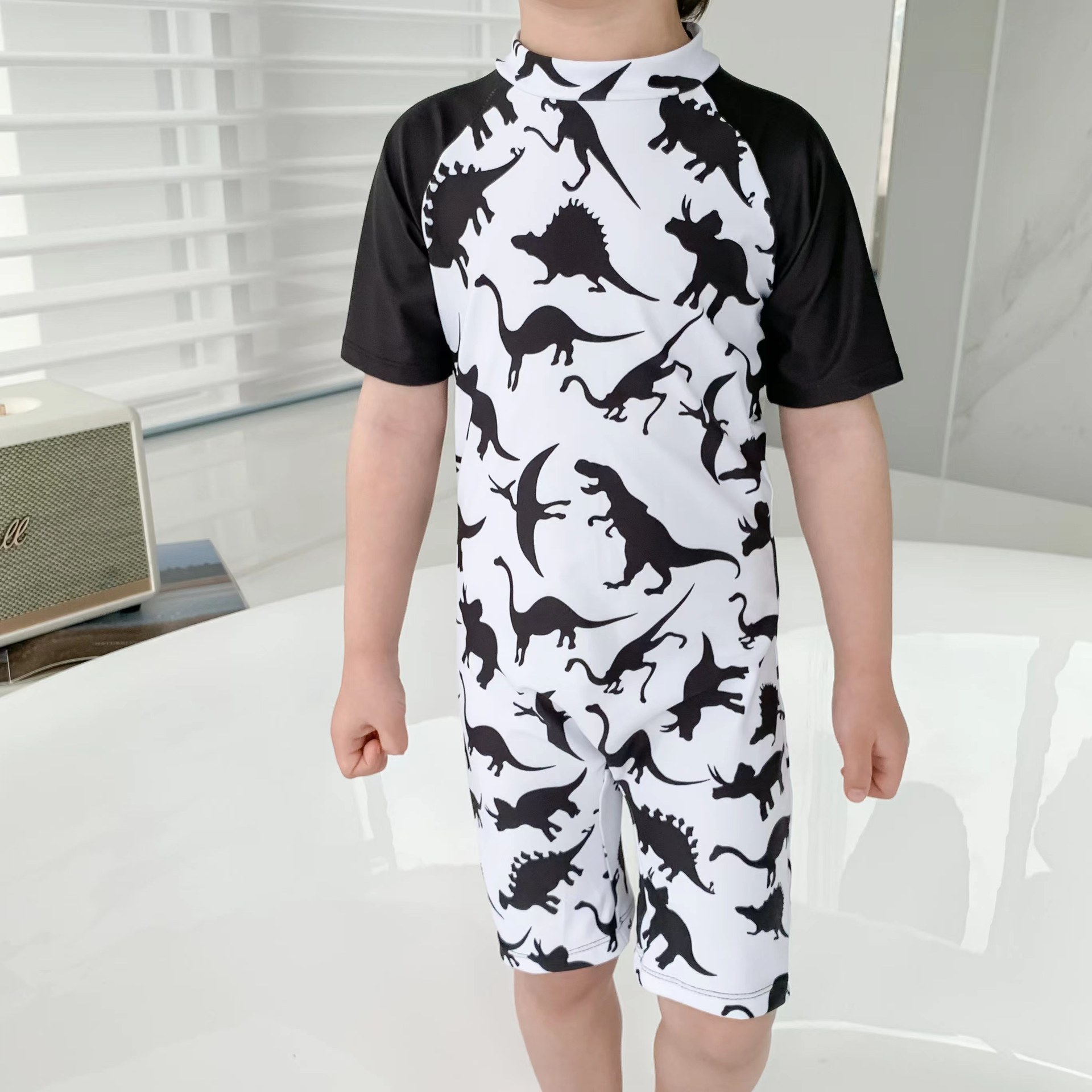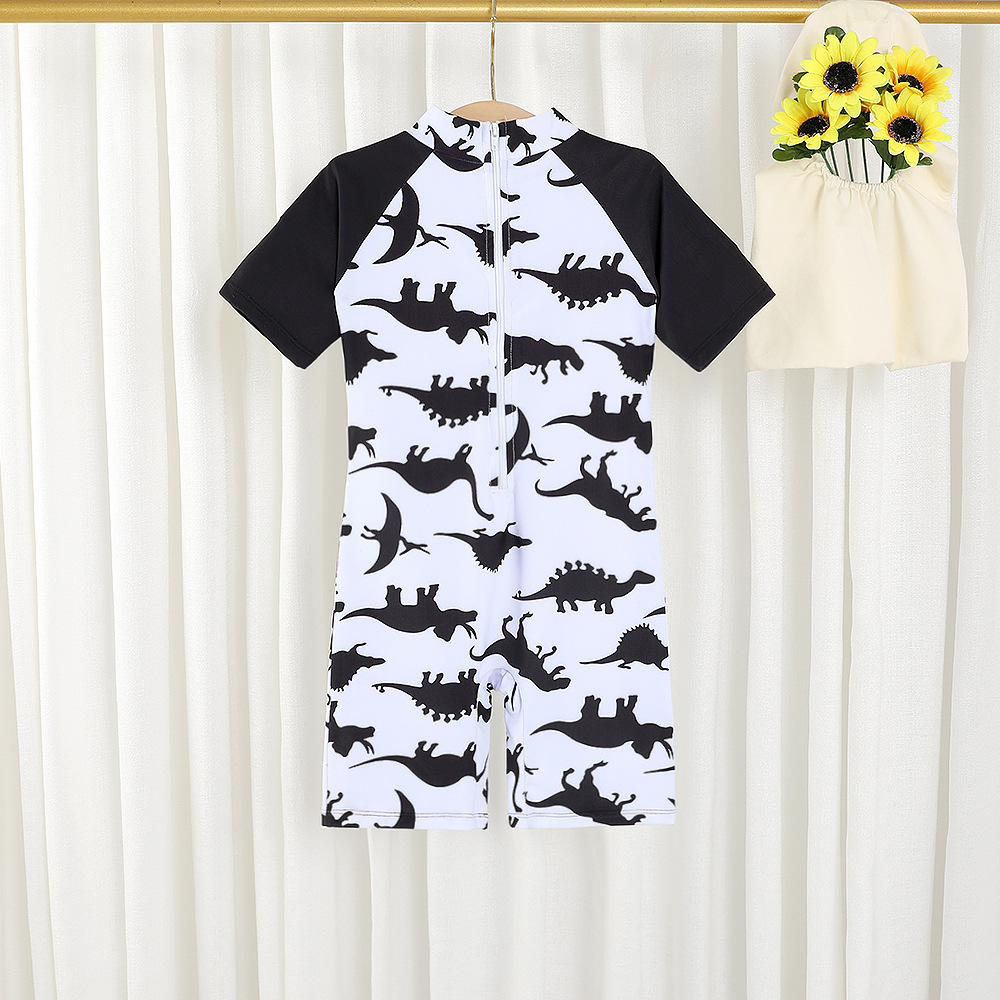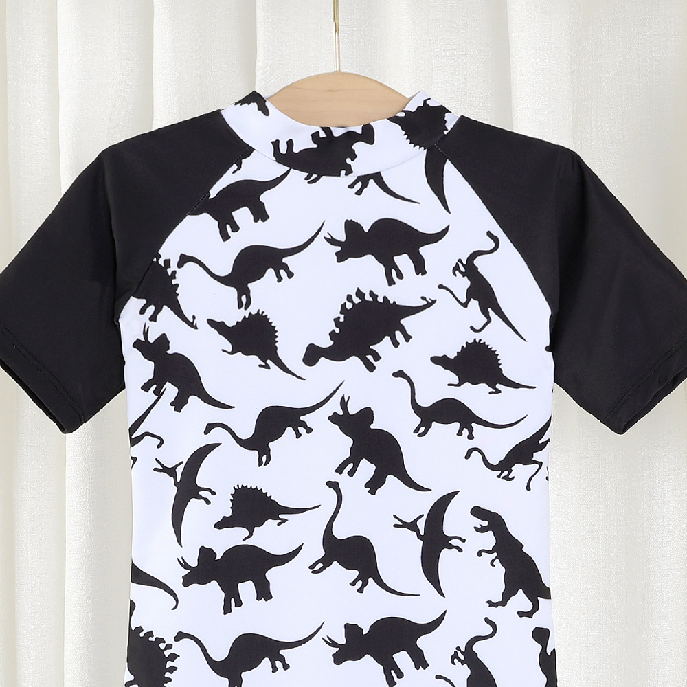18M-7Y Toddler Boy Cartoon Dinosaur Print Color Blocking Short-Sleeved One-Piece Swimsuit Boys Clothing