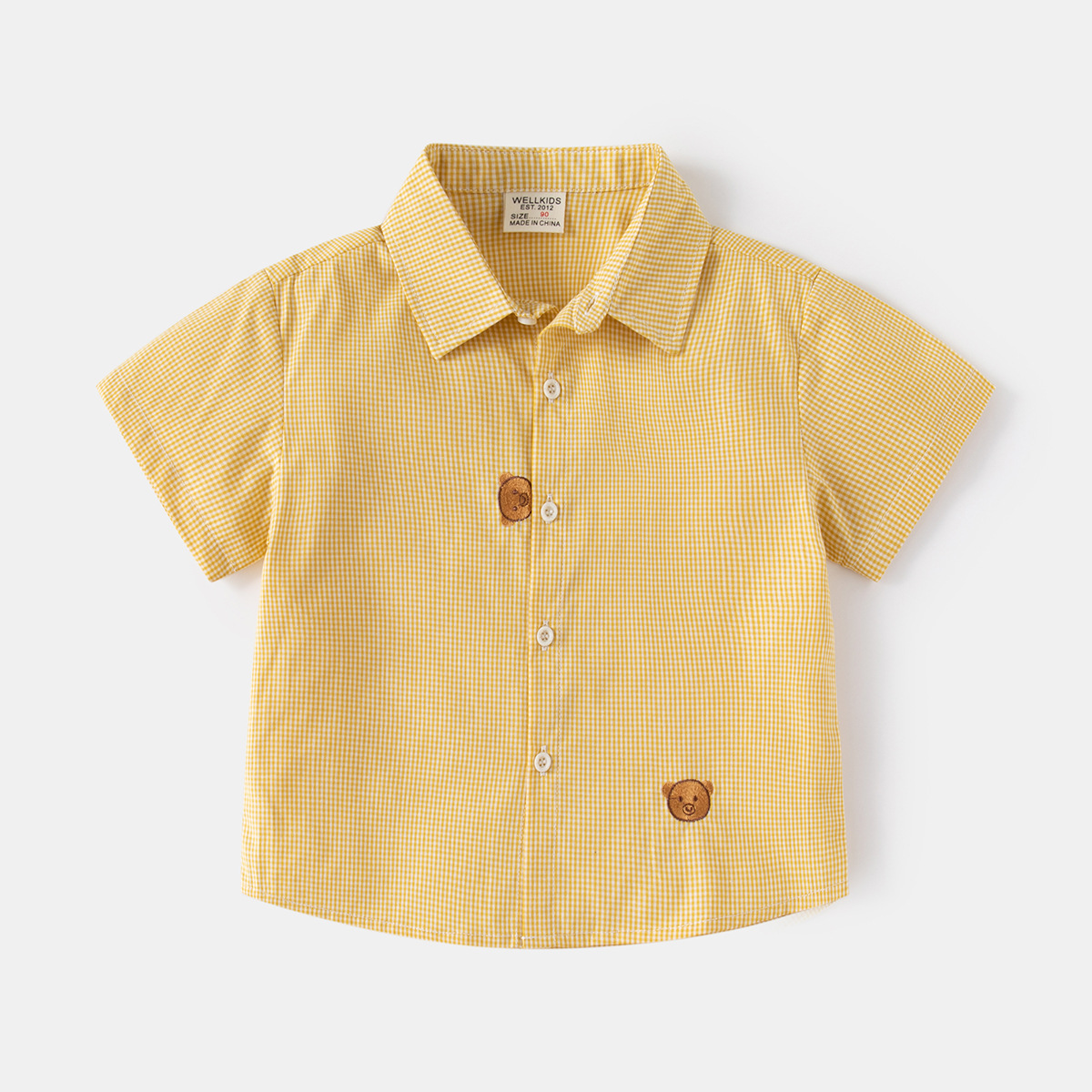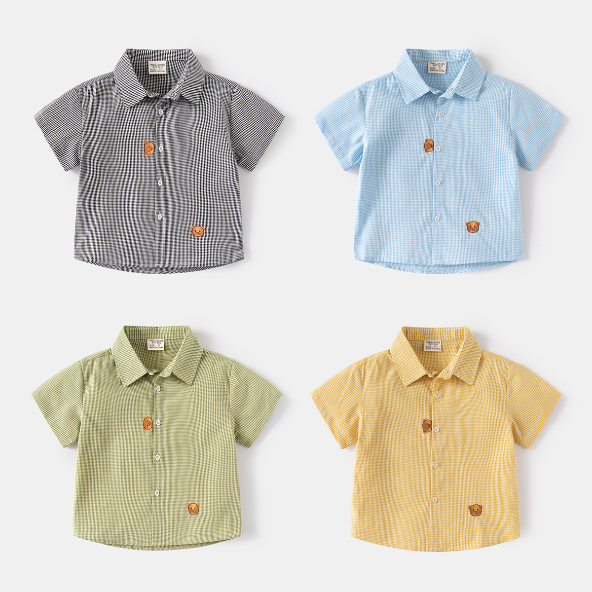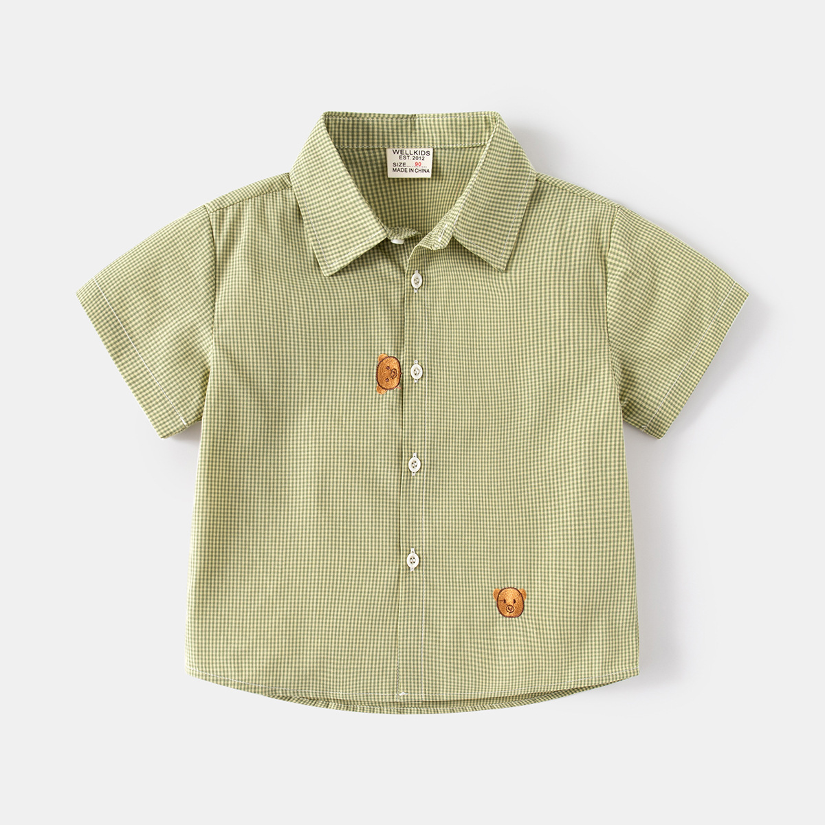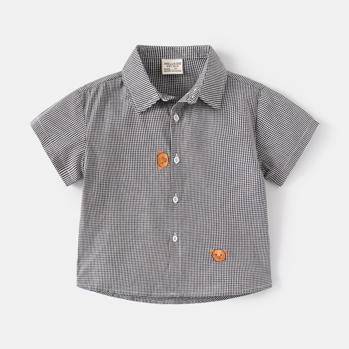 18M-6Y Toddler Boys Bear Plaid Lapel Shirts Boys Clothing