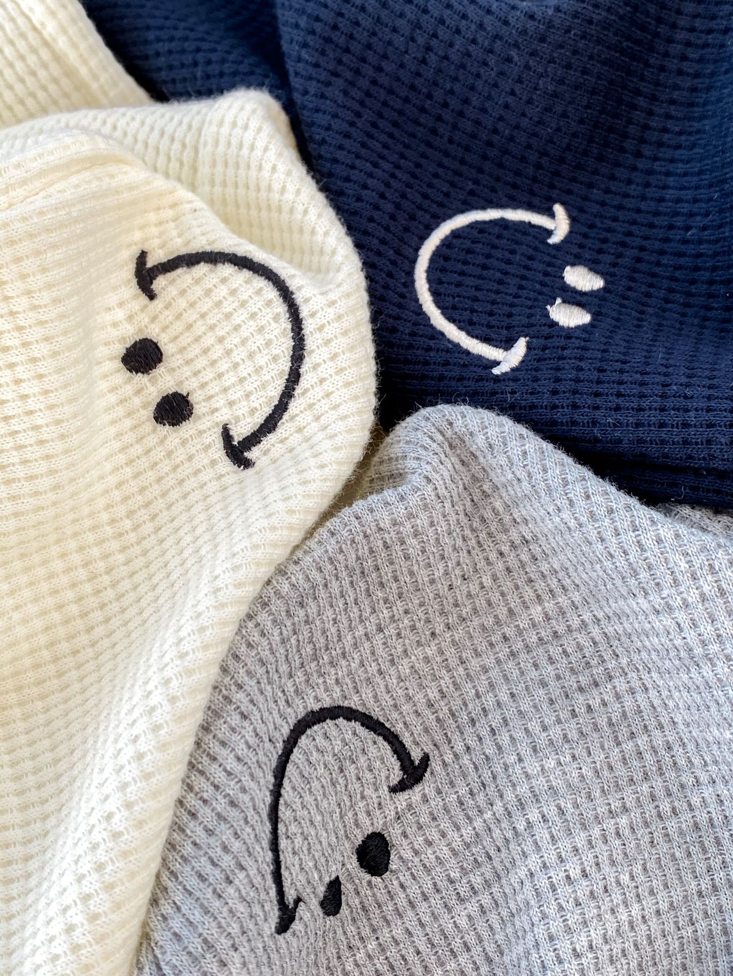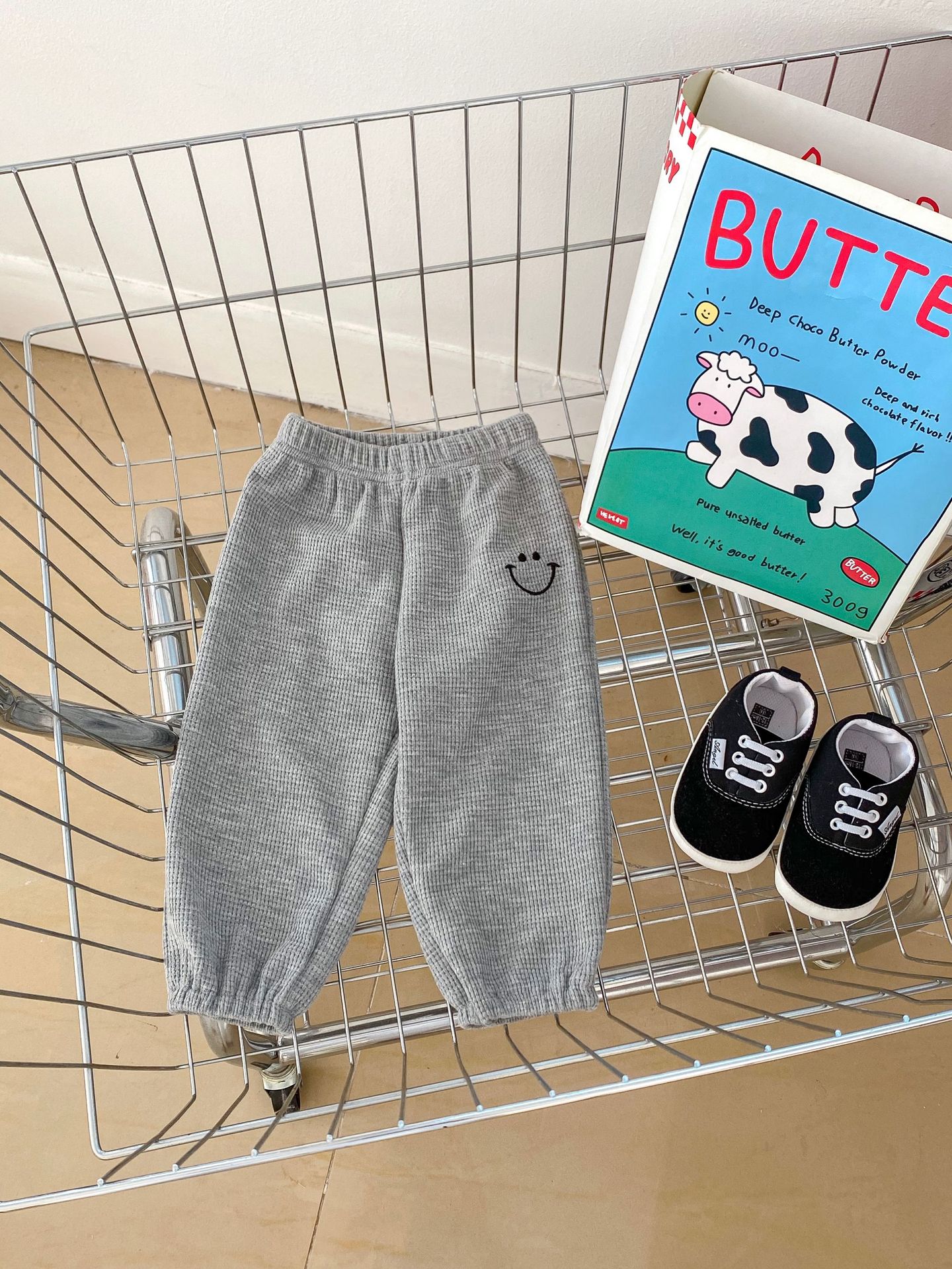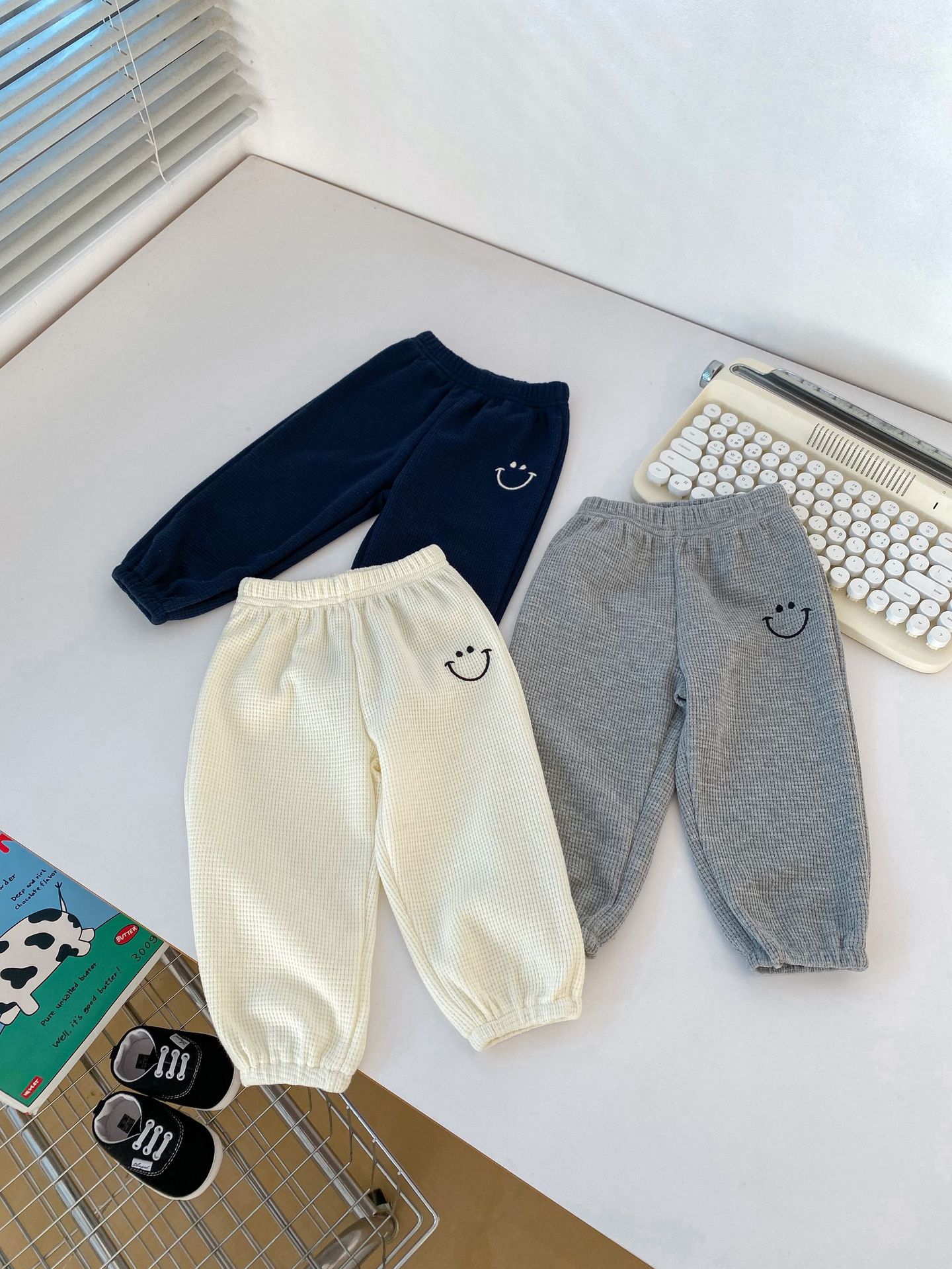 9M-5Y Toddler Boys Smiley Embroidered Waffle Track Pants Boys Boutique Clothing