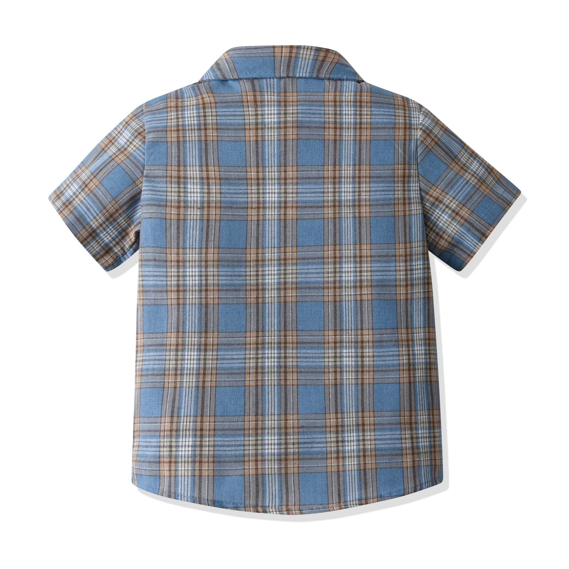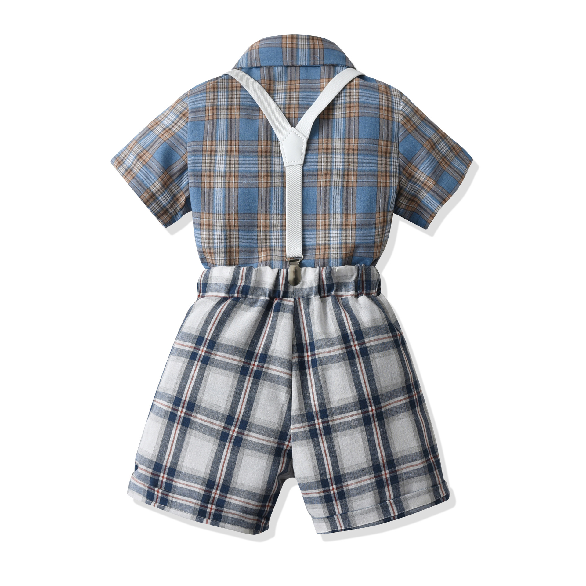 18M-7Y Toddler Boys Sets Plaid Short-Sleeved Shirts & Suspender Shorts Boys Clothes