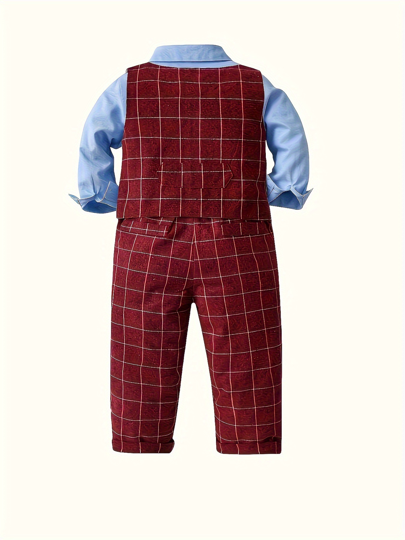12M-6Y Toddler Boys Suit Sets Long-Sleeved Shirt & Plaid Vest & Trousers Boys Clothing