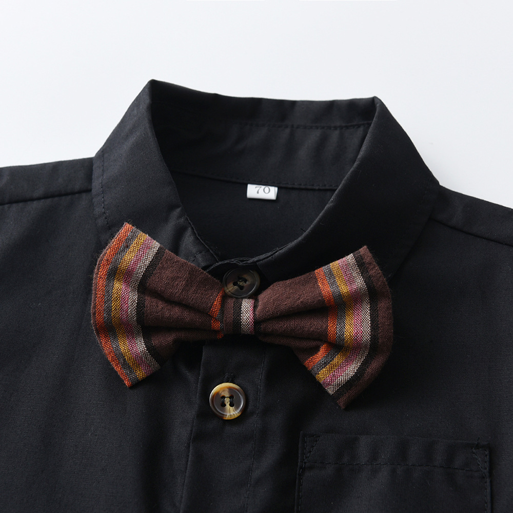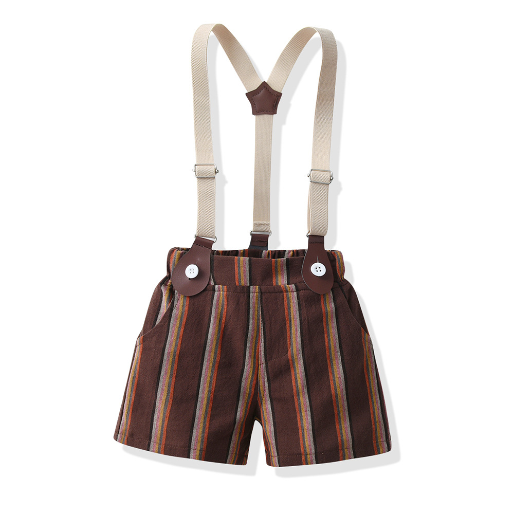 9M-9Y Kids Boys Suit Sets Party Bowtie Shirts And Suspender Shorts Boys Clothing