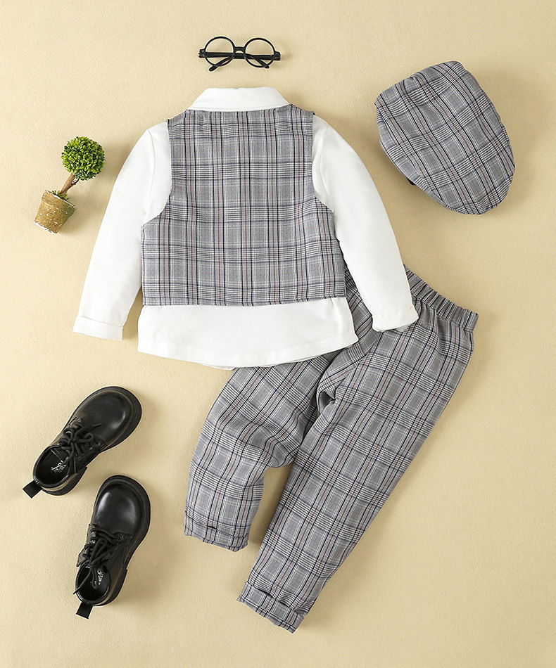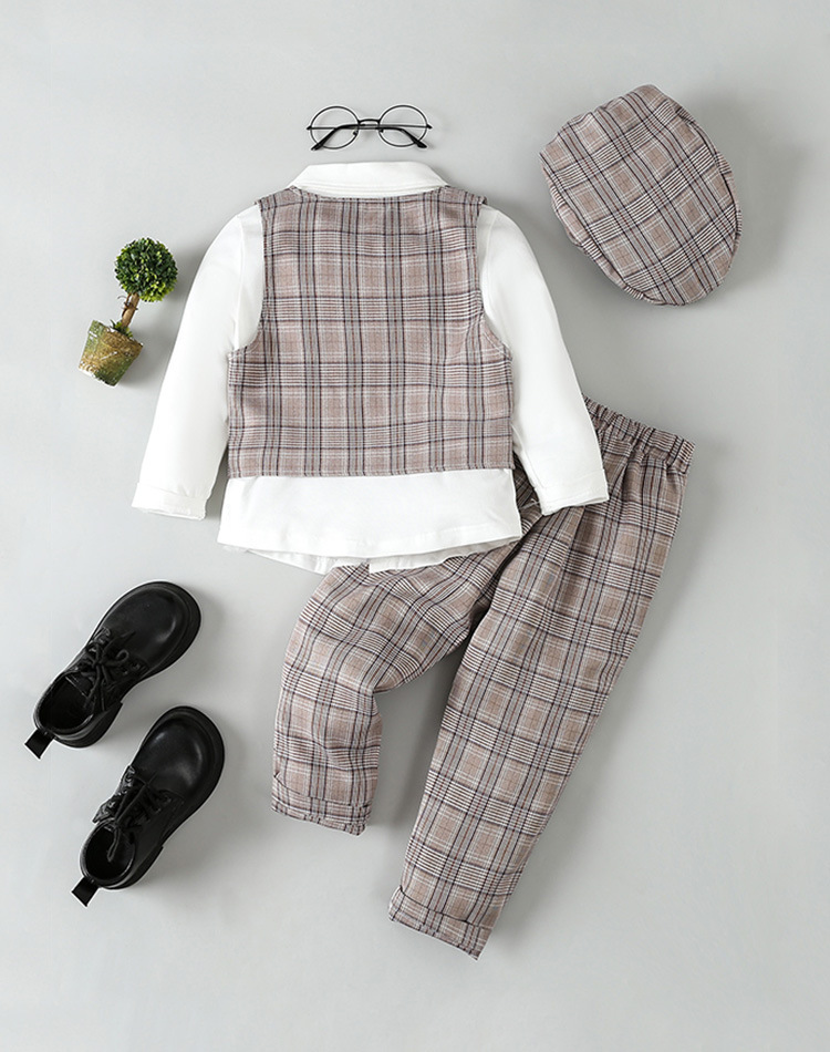 18M-6Y Toddler Boys 4pcs Plaid Vest & Shirts & Pants & Hats Boys Boutique Clothing