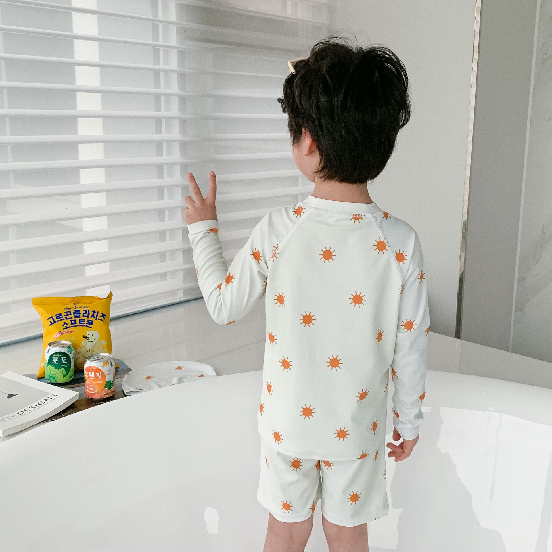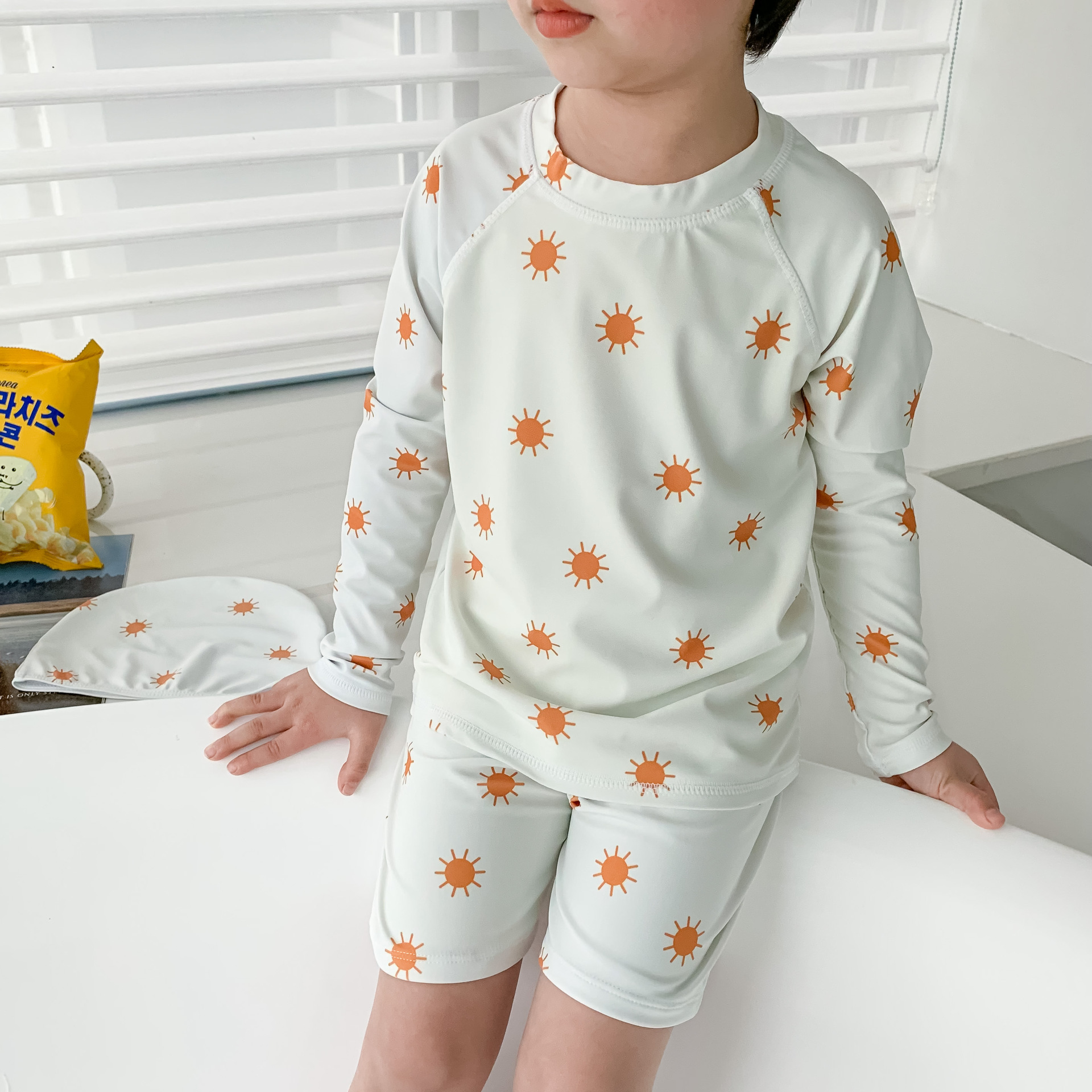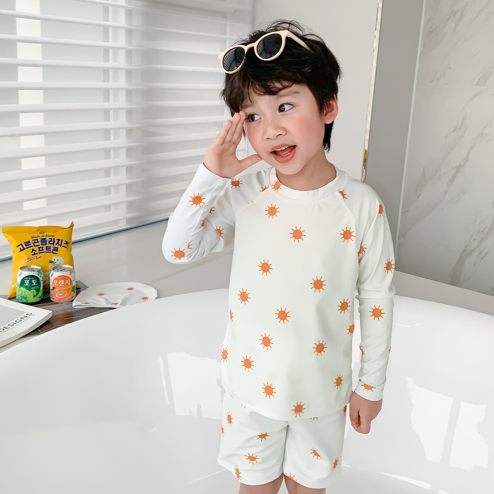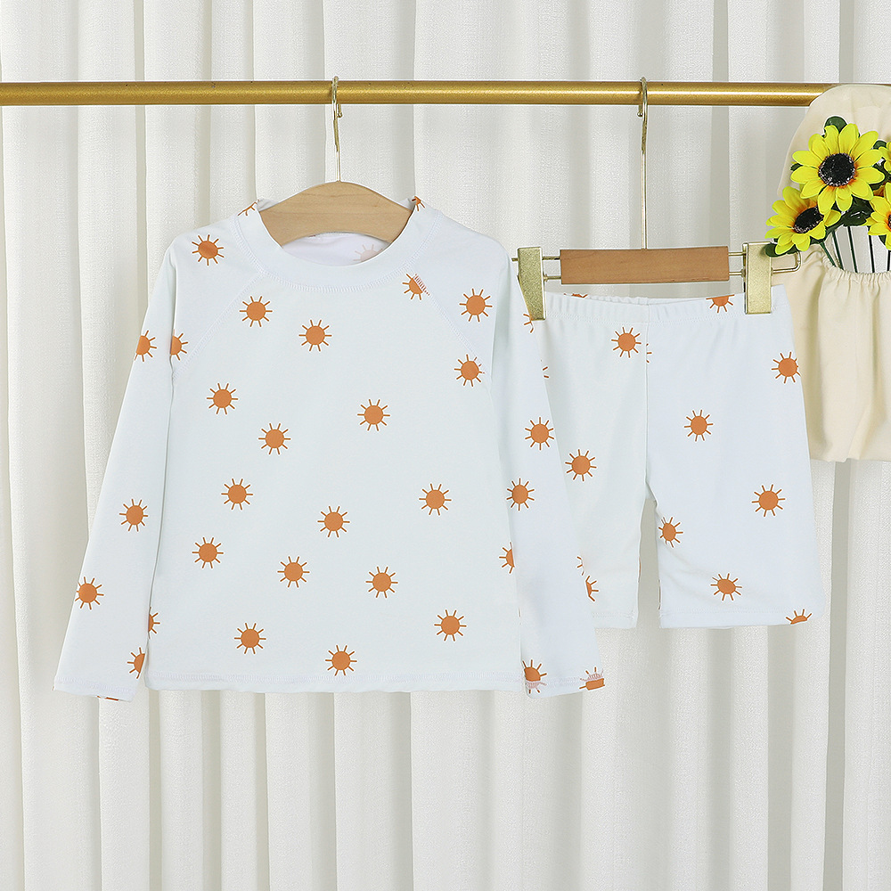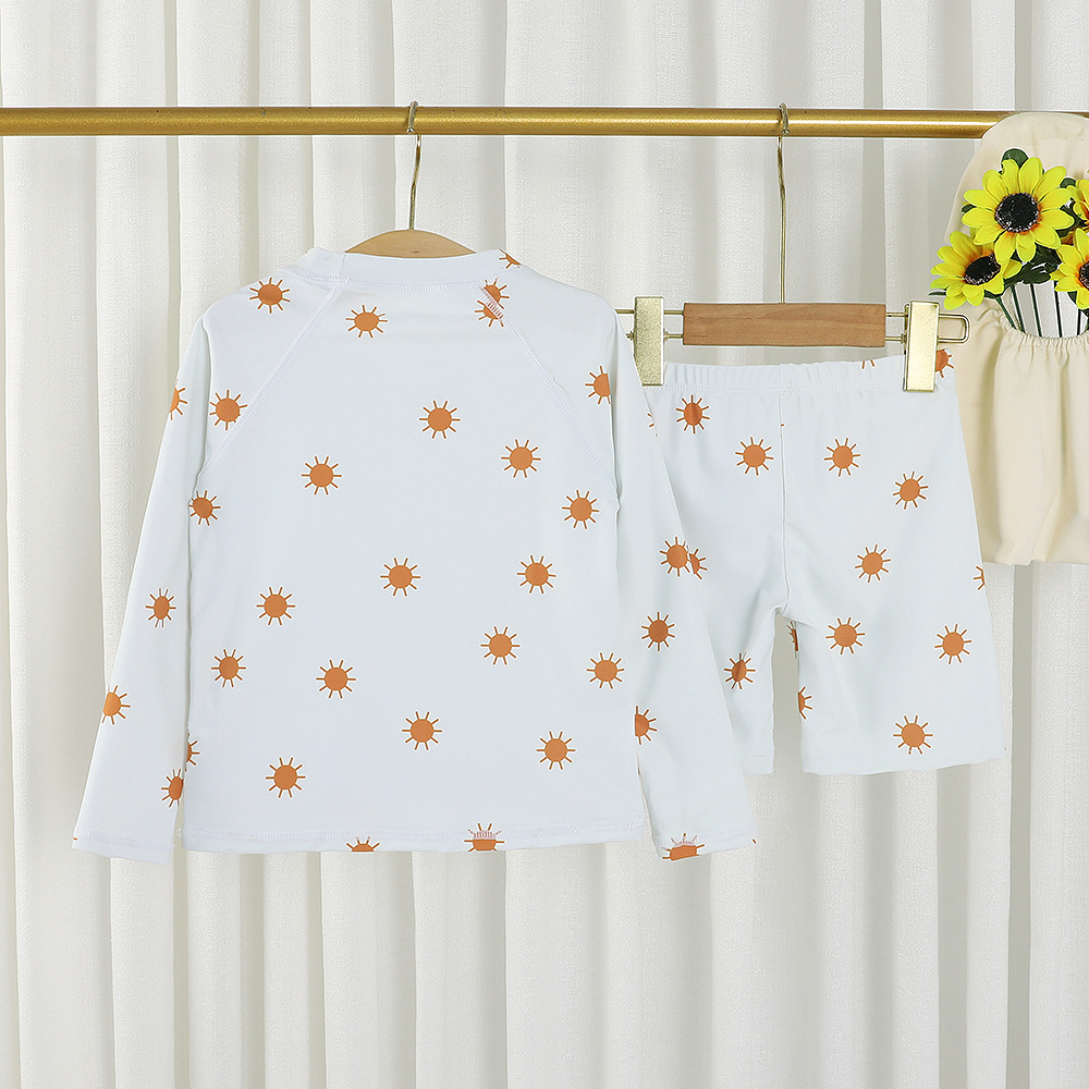 18M-8Y Kids Boys Sets Cartoon Sun Print Long-Sleeved Top And Shorts Split Swimsuit  Trendy Kids Clothing