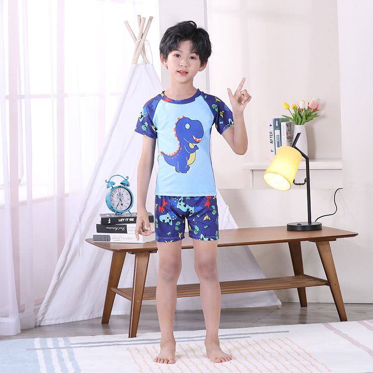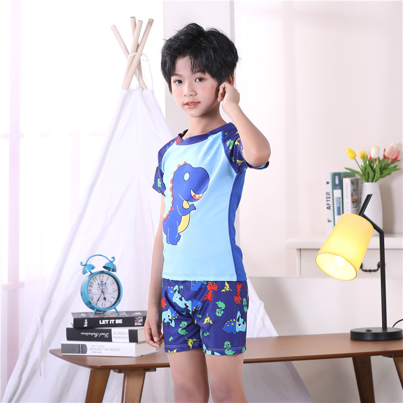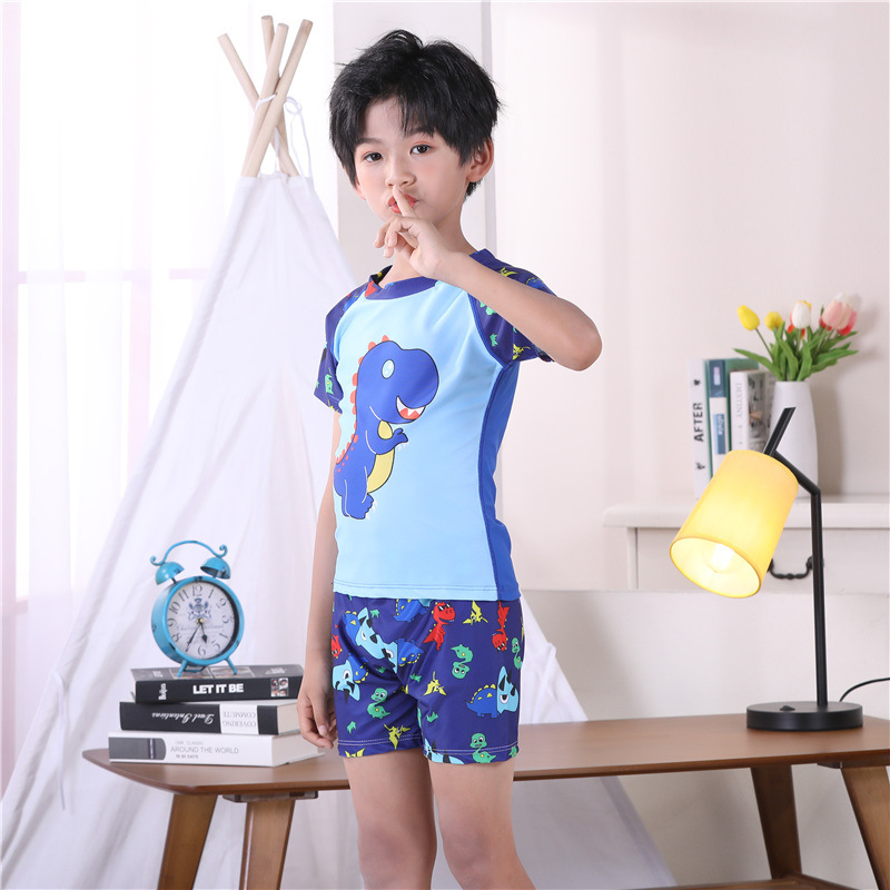 3-11Y Dinosaur Cartoon Print Colorblock Tops And Shorts Set Swimwear  Kids Boutique Clothing