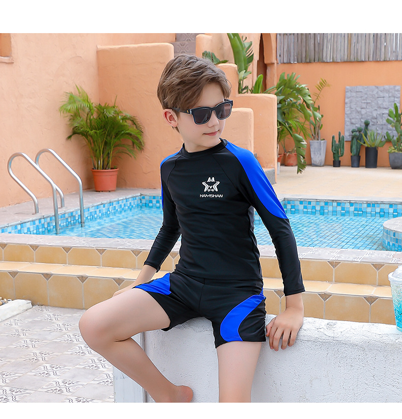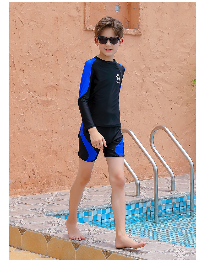 5-9Y Colorblock Long Sleeve Tops And Shorts Swimwear Swimsuit Set Kids Boutique Clothing