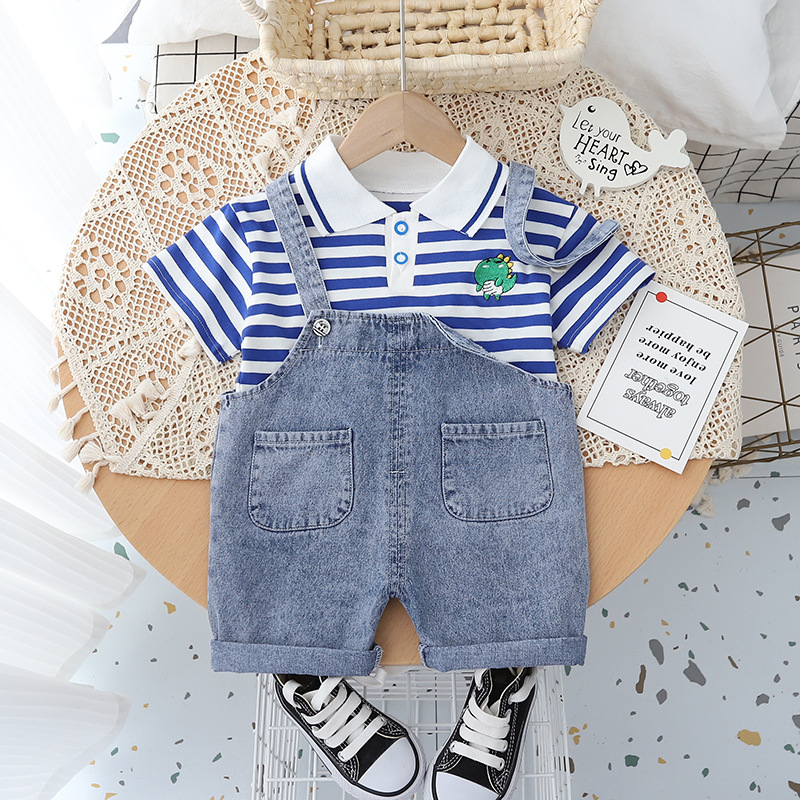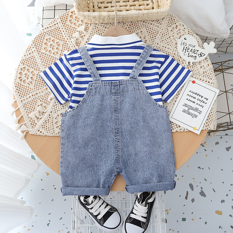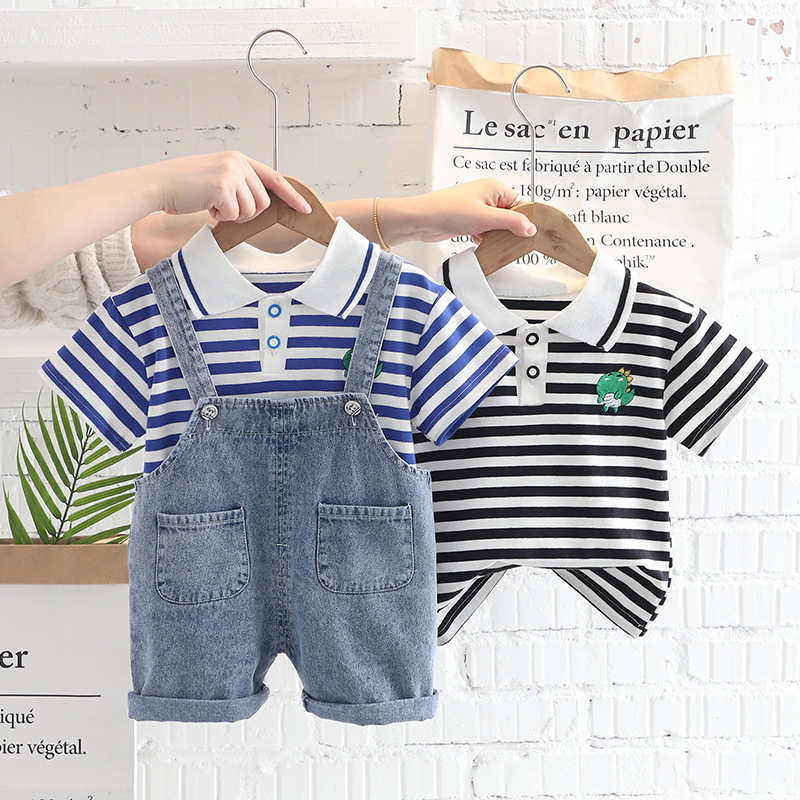 12M-5Y Toddler Boys Sets Striped Polo Shirts And Suspender Jeans Girls Clothes